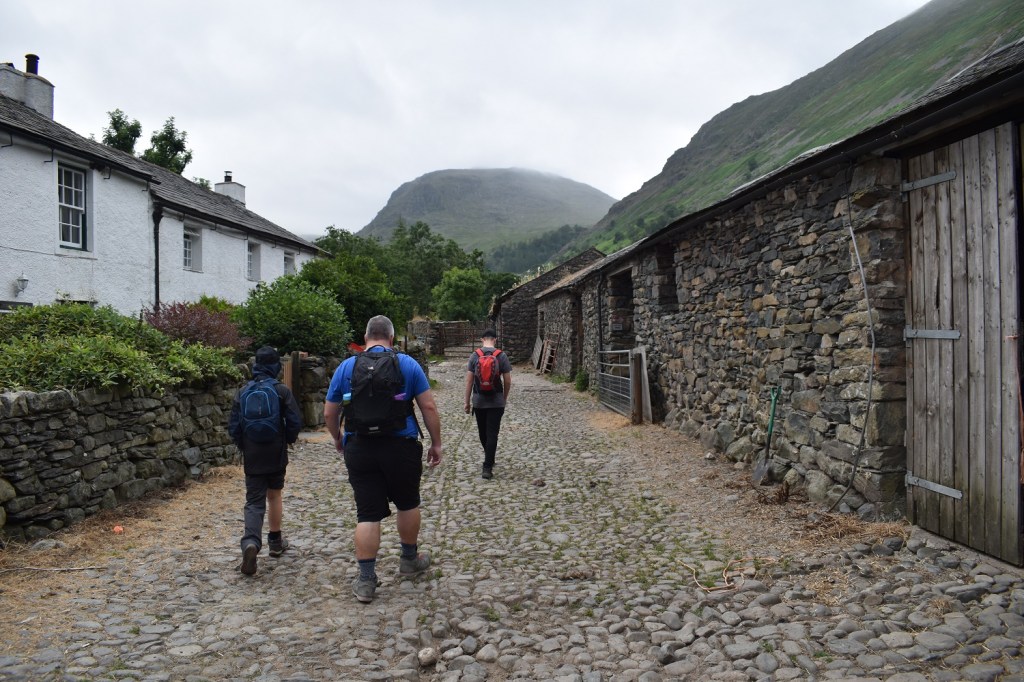 Seathwaite Farm, the wettest place in England, we turn right through the barn and the gate on the right