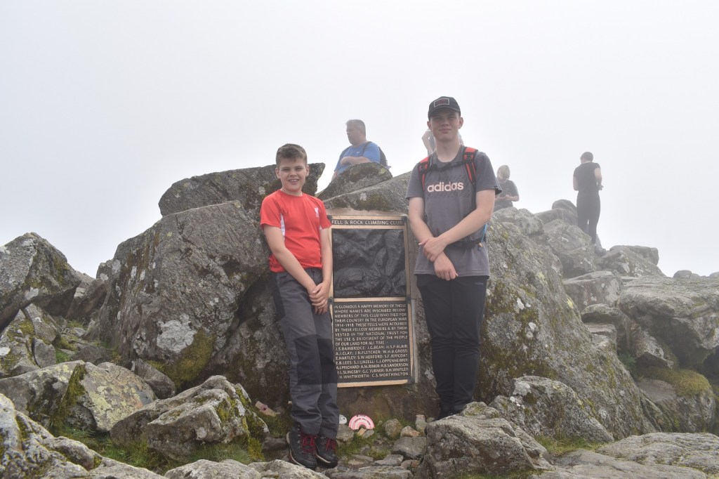 The boys on Great Gable, the cloud is in, it was swirling around with the odd break but nothing in the direction of the Scafells