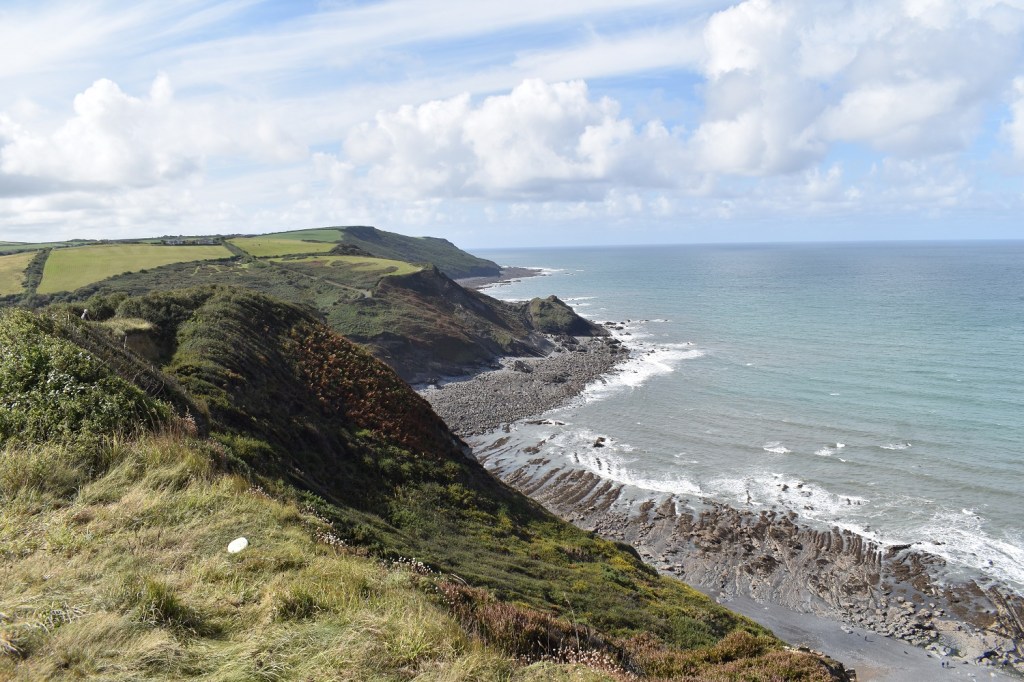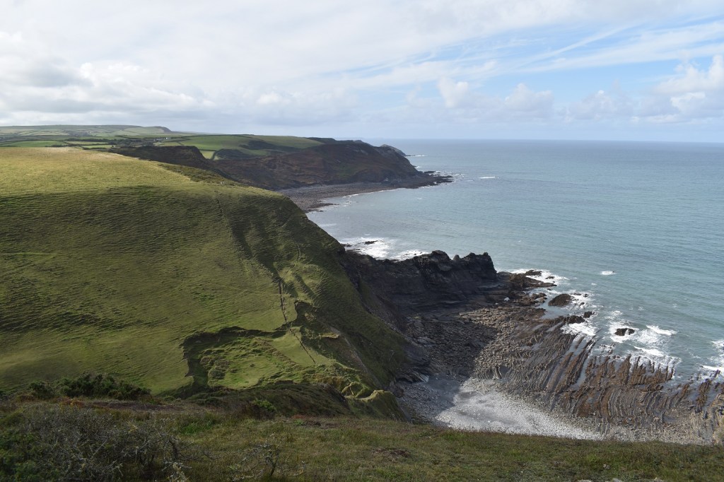 Just walked out of the community car park (a reasonable £3 for the day rather than the extortionate prices down the road in the private car park). Here I’m looking towards the beach at Crackington HavenA glorious sight, Crackington Haven beach and Cambeak is the point over thereYou start with a steep climb, in fact the first couple of miles involves 3 of these steep climbs which warms you up nicely!!Crackington Haven is down thereOver the first hump and the next down is already upon me. The next section looks a little strange, like a narrow hill stuck by the sea. Bude is in the distanceBottom left is my descent and then back up to here, these downs and ups are a bit steep so early in the walkLook at this! It’s like an arete by the sea. Absolute glorious walking along here as I head to Cleave StrandA bit of huffing and puffing gets me here to Cleave Strand, behind me is another descent thoughDown and up with zigzags. The other side is Dizzard and Long CliffLooking up the valley towards WhitemoorUp the other side now but look at the views here. I haven’t a clue how the rocks on the beach make that shape and line, bit they do it a lot along this sectionLooking ahead towards Widemouth Sand and until Millook I have a fairly level ish sectionSpeckled WoodThe trig on Long Cliff, looking back inlandThe view gets better as you near Widecombe Sand, all the way to Hartland Point far leftAnd again, I loved this section of the path, lots of trees and brush, the slumped cliffs which have slid down but the path stays high with great viewsI descended now to Millook, you could head right here through Millook Common to The Den to shorten the walk, but my time was good and meant another steep climb to Penhalt CliffI loved the cliff rocks here, again those with a modicum of geology will know why they are zigzagged in this way, all I knew was I had another steep climb to comeOn the climb looking inland over Millook Common (the trees in the valley)Looking back over Long Cliff, as I reach the top of Penhalt CliffAnd wow, ahead to Widemouth Sand, fantastic views and time for a quick coffee stop to appreciate the vista. After this I dropped down along the road to Wanson and then turned inland to follow a path towards PoundstockStarting on the Poundstock path and you get views back to Wanson MouthI had a another stop here for a brew and food with this fine view to Wanson Mouth