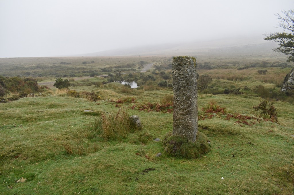 Here I’m by the marker stones on the Tavistock to Okehampton road, I’m at SX516827. There are two and the other is just up there past the car. The weather hasn’t improved but I’ve eaten a fine pasty from the Lydford farm shop
