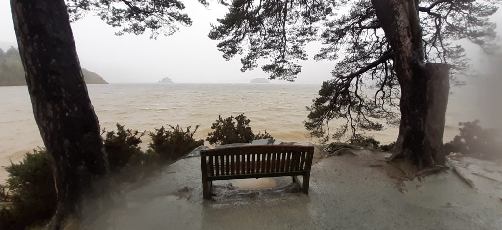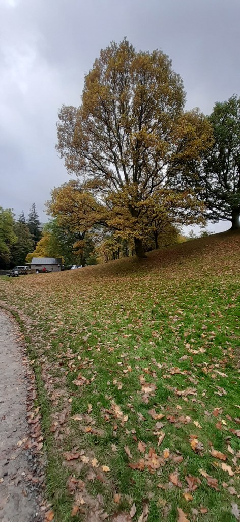 Near to Friars Crag now the path around Derwent Water is usually to the right of the trees however that has disappeared, two days ago the water was around a metre lower and there was a bit of a sandy beach to walk across over there