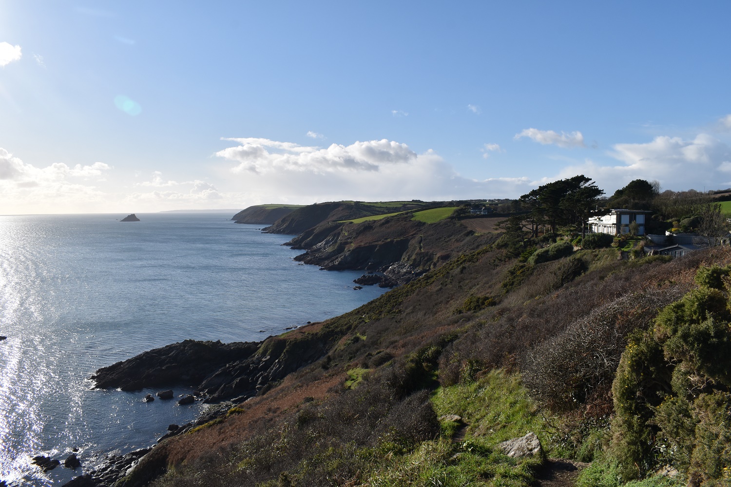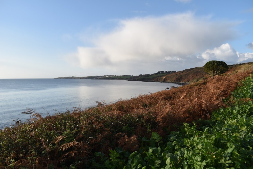 A walk deep in the Roseland Peninsular in perfect weather which made for a spectacular walk. I was looking for walks for this weekend and was deliberating back and forth. Coastal or Dartmoor. I have plenty of Dartmoor to explore and the weather was set fine, but at this time of year the light is short and I needed to make sure that I made the most of it. I seem to ignore the obvious and decided to drive the longest distance and walk the second hardest of the walks I could choose. Only a drive to the north coast and a walk out of Port Isaac could have been harder! Still I seemed to ignore all of that and set off at 7.30am for Roseland Peninsular, south of St Austell. On arrival I knew I’d picked the right walk, the weather was stunning and in for the day, once some early showery sprinkles and cloud had passed overhead. I knew that I needed to keep pace from the off, it was a long walk and the easy stuff was upfront. Normally I tackle the coastal path first and then the road walk back is easy and far quicker than I expect. This time I switched it around and made good time to Caerhays Castle along the lanes. However I underestimated the walk back, especially the part from Caerhays to Portloe, which was far longer than I anticipated. Still a good path to Nare Head sped things up and I made decent time back to the car. There are plenty of great spots along this section of the path, the beach at Portholland is superb, however the introduction on ANPR cameras on the eastern beach has ruined it for the locals. Portloe itself deserves a stop off in the pub (which is up the hill from the coastal path), and both Carne and Pendower beaches are gems. However the best part for me was the inland village of Veryan, it has everything, a pub, village hall, church, shop/post office, toilets, lovely houses and a pond (with Christmas decs in it). It sits alongside Ringmore in South Devon as my favourite village so far on this quest.