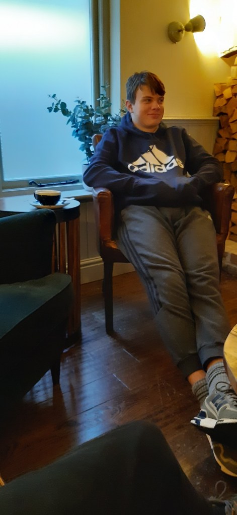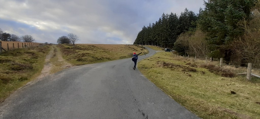 A bit of a gap since the last walk with the boys due to my eldest getting a bout of Covid (or Rona as he calls it). He had very little in the way of symptoms and spent the 10 days off school mainly playing games and lording it up over his friends. The 11th day I had him out on Dartmoor. I thought I’d sweeten him a little by going to Widecombe and enjoying a lunch at the Cafe on the Green first, which was an inspired decision as we all enjoyed our toasted sandwiches and hot drinks, before heading out on to the cold moor. The walk was an easy one around Soussons Down, picking up paths that took us where we wanted to go before heading back through the forest to the car.