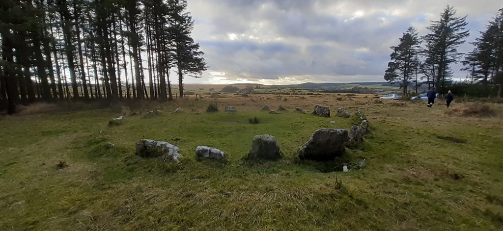 Next D365 spot was Langworthy FarmThe gate post in the centre has a drawing in the bookA placid highland cow crosses the road, I reckon his fringe needs a trimUp at Warren House now, a bit of cloud as we look towards BelleverWe are off though down to Vitifer MineLooking back up to Birch TorHeading towards Golden Dagger mineThe engine house of the mine having passed a few buildingsThe path looped a little and doubled back crossing a stream as we head towards Soussons FarmEphraims PinchSoussons Cairn Circle looking out towards Bellever ForestHeading into Soussons Forest, there are plenty of paths in here weaving their way through the treesViews back towards Corndon Tor to the right and a bit of Hameldown in the sun on the leftUs as we leave the forestCentre of DartmoorSun rays on Bellever TorPlenty of ice in the puddles today