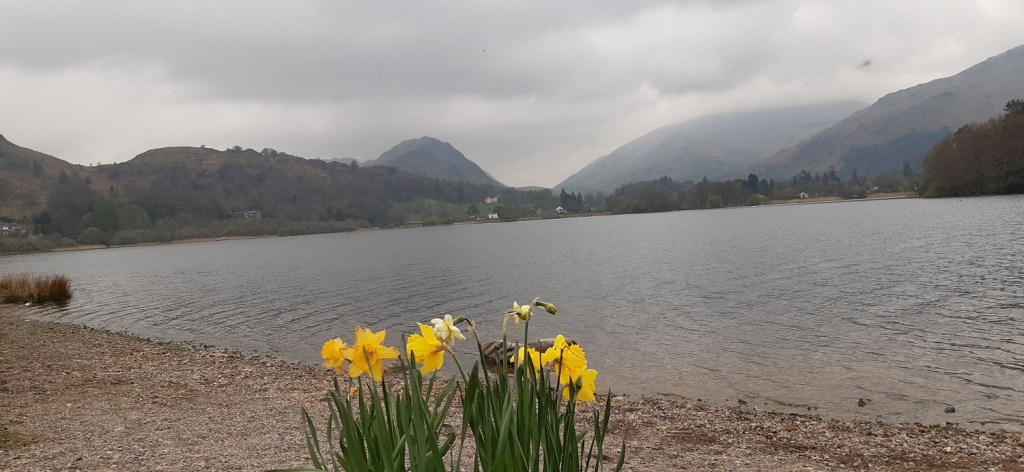 Now to the next day and Grasmere. That’s Loughrigg Fell over there as I set out along the Red Bank Road partNab Scar rising up as I look across Grasmere itself from an old boathouseSome of the thicker cloud was down on the higher fells. Seat Sandal is missing its top section over there (I’ll be on there later in the week though)Now then I’ve taken lots of photos for this website but none worse than this, concentrate on the daffodils and ignore the fact that Grasmere is sliding leftThat’s better, Helm Crag at the other end of Grasmere and Dunmail Raise is the dip to the right of thatThe weir that leaves Grasmere and heads to Rydal Water. I’ve never carried on around Rydal, I’ve said I should, many times, in fact I stood here this time and said should I carry on? But I chose not to!Silver How looks superb from this angle across GrasmereGrasmere and the fells behind it as I walk along the road back to the village