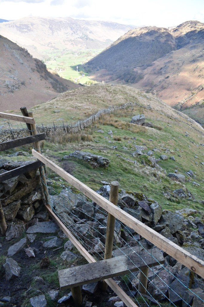 I’m at the stile now, this is a new one which has replaced the old rocky one. That’s the grassy top of Bleak How below