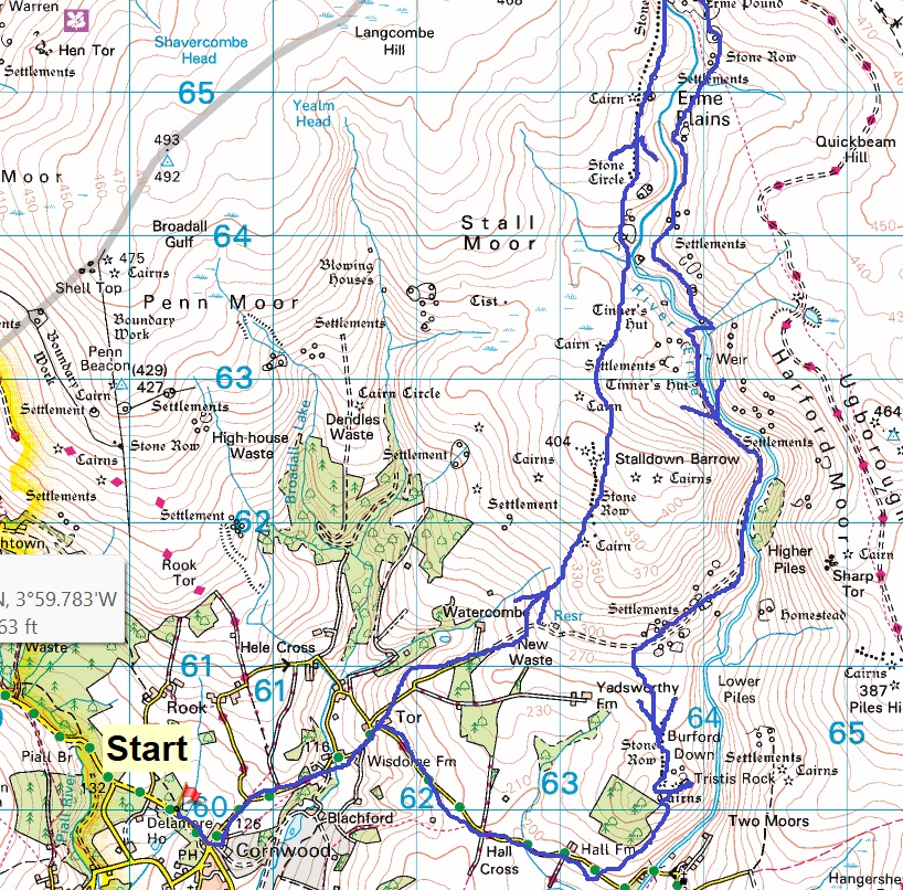 The promise of some nice sunshine, warm weather, but not too warm. Perfect for walking and I figured a good time to head out along the River Erme. Parking at Harford Gate still appears to closed off and as it was Sunday I figured parking on the road at the church might be a bit cheeky. So I headed to Cornwood, this makes the walk in a bit further and as a result I don’t get up as far into Dartmoor. However its not a worry as the majority of the highlights in this area are south of Erme Pound, which is were I turned and headed back. The stone rows come thick and fast around here, Stalldown Barrow has a great one, the longest one in the world (Staldon stone row) starts at The Dancers (stone circle) and I only did part of it on this walk. Then there is one at Erme Pound itself plus another on Burford Down, which isn’t quite as good. The final part of this walk was along the lanes back to Cornwood, passing Hall Farm and one of my last three Dartmoor 365 squares. Just 2 to do now, The Walla Brook and William Donaghy, so another list is coming to a close, so I need to have a think about what else I can do around Dartmoor. The 365 is such a superb way to see all of the moor, it certainly deserves another go at it, simply to visit the places knowing I’m doing the Dartmoor 365. This first round meant I went to half of the squares as part of ticking off my tors list, or on other walks a while ago so maybe they all deserve another proper visit. Plus it gives me some great winter walks along lanes. I still have the coastal path to keep chipping away at, and the Wainwrights when up in the Lakes. Alongside that I’ve got a bit behind on my website updates anyway, about 3 weeks (and 3 walks) as I type this. I’m off to the Lakes again in a week or so, which usually pushes me back as well!! The main reason for the slow updates has been some improvements to my site as a whole that I’ve been engrossed in. I’ve added maps to each of the Dartmoor Tors pages, alongside the bridges and buildings pages, marking each of the 500 tors on a google map or the buildings and bridges, so it makes things easier to find for us all. More of these maps to come on the parking pages, historic and probably one for the Dartmoor 365 page as well. I have to thank Melodie and her hiking part of her website for giving me the idea.