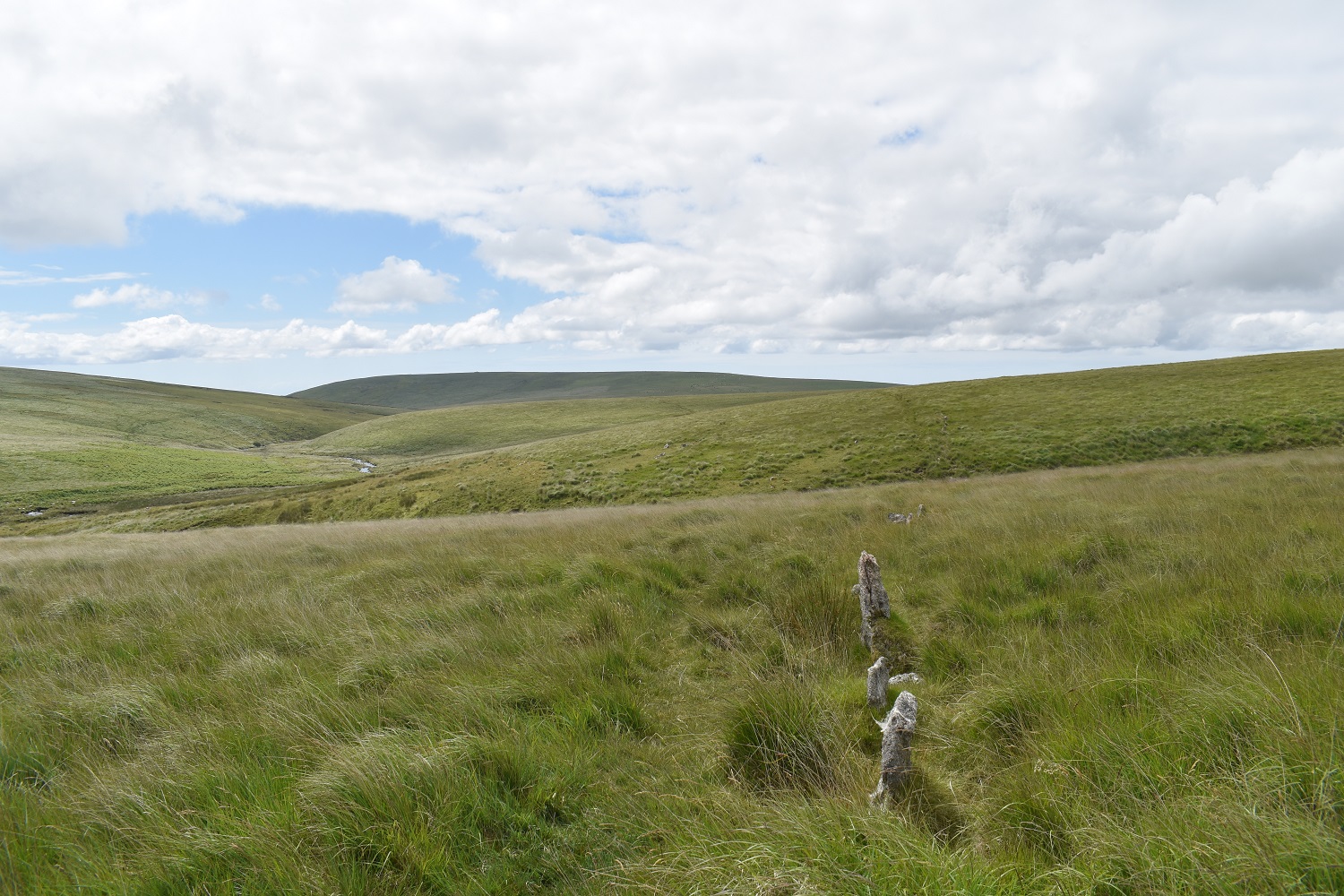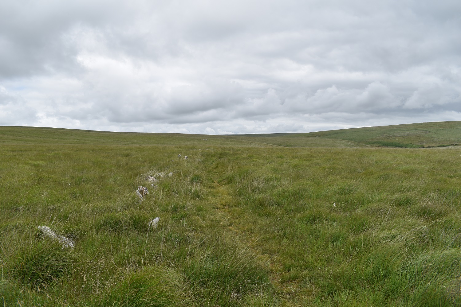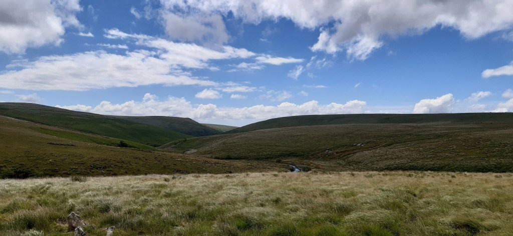 Right so its fairly early and I’m parked up, booted and ready to go. The sun is shining and its fairly warm already, I slap on some suncream and head off along the road towards CornwoodJust to Cornwood, not London!Cornwood was fairly quiet at 9.30 on a Sunday morning so I was quickly along the lane to Wisdome BridgeHeading slowly uphill along the lanes helps to gain some height easily, the butterflies were out in the sunshine, including this CommaI’d meant to do a walk in this area to check out parking options after Harford Gate car park was closed in 2021 (can only hope this decision is reversed as it makes access to the area behind Stalldown difficult to access). This is the lane to New Waste and as you can see you’ll get one car (possibly two) where the red one is up there, about 500 metres from the New Waste gateLooking across to Penn Beacon, as I head into the edge of Dartmoor proper the cloud builds a little overheadClimbing up the side of Stalldown Barrow towards the first of my stone rows. Views to Plymouth Sound from up hereStalldown Barrow Stone Row, lots of large upright stones on this one so its one of the better rows on the moorThe way I am heading, out the back of Stalldown Barrow is tough walking, lots of tufty grass and boggy in places. Those with a keen eye will see the dimple in the distance which is Redlake. Not going that far todayNow I’ve been this way twice now and both times I’ve handrailed the river at this point, (notice the tree, there are very few trees this side of the river), never ever do this, as a few metres after the tree is an area of wobbling ground sat on top of a bog. Like me you will go knee deep and have a wet sock for the rest of your day out. This was the first weekend in July, prior to the exceptionally hot batch of weather we had a week or so later, and it is still boggy at this time of the year.The boggy section on the previous photo is down there, you can just make out the tree/bush by the bend in the river. Don’t mess about down there instead stay on the bank to the right as I look back. That way as you head up towards The Dancers, your feet will be dry and you will be able to look back at this lovely view along the Erme to Sharp Tor left and Stalldown Barrow on the right.Same view as previous but now with The Dancers, this is the start of the Staldon Stone Row, said to be the longest in the world, it runs for 2 miles finishing north of here at Green HillLots of green, and one of the few paths here following the stone row northA small skipper butterfly, a few of these out here todayStalldown Barrow covering the back of the photo, River Erme on the left and the Staldon Stone Row heading that way. I’m going behind me at this pointI tried to cross the river at the point near where the stone row also crosses, there is a sort of ford there but with the high rainfall at the end of June the Erme was running a bit high. So I found about 10 large stones set out perfectly for me to traverse downstream of the ford area. A few minutes later I was stood here at Erme Pound. Now the ground in this area is horrid, the grass is thigh deep in large parts of it and you can’t see were to put your feet for large parts in this area.Here looking upstream towards Stingers Hill, the Staldon Stone Row is on the other bank over the River Erme. My only real option was to walk the banks above the tall grass, I didn’t fancy ascending up to the Two Moors Way path above me, as I only need to walk back a mile downstream to cross the Erme again by the weir. So I stayed nearer the river and picked my way around the pound and its banks, following what sheep paths I could.It was whilst trying to pick my way around the Pound that I stood on a pile of large rocks to try to see a way through the long grass. One particular rock rocked on me and as I put my other foot down to balance myself, my weight tipped the rock backwards, I fell backwards with the rock trapping my leg against another large rock. Lay flat on my back I was unable to sit up enough to push the rock away, luckily however I managed to get my left leg back to lever it away. I hobbled to this point, but I was lucky as there wasn’t anything worse than a cut below the knee and a sore leg (it bruised a day or two later).The weir on the Erme or at least the pool before it. I crossed the river down on the right here as I wasn’t sure if the weir was crossableThe weir and it wasn’t crossable, not sure it ever is unless there is barely any water heading over it.This is the good path used by the water board out to the weir, and makes a fine quick path to get you back around Stalldown Barrow. Leg still not great at this point, but I had passed my first people of this walk nowPiles Copse and Sharp Tor above. The camping in Piles Copse is currently out of bounds, hence the closure of the Harford Gate car park to help with this, however it seems that people coming here cannot read as a fire has damaged more of the area in that woodland caused by us. We are talking about an SSSI, one of 3 upland ancient oak woodlands on Dartmoor and the owners are trying to protect it, allow it to regenerate itself a bit before opening it again. Surely a few years camping somewhere else can be accommodated by people to allow this, or would it be better that we are never allowed in there again, utter clowns.looking out along the Erme in the direction of Ivybridge, the hill on the right has Tristis Rock on top, I’m heading there nextOn Burford Down now and the floor colour has changed from an ever present green to this yellowy grass which was swaying in the breeze alongside this purple headed thistles of which there were thousands sticking up like thisTristis Rock looking back along the Erme ValleyAnd the other way out to IvybridgeBurford Stone Row and Stalldown Barrow, I’d originally climbed left to right up that one earlierJust down from Tristis Rock, following a grassy path is a gate at the corner of woodland, this takes