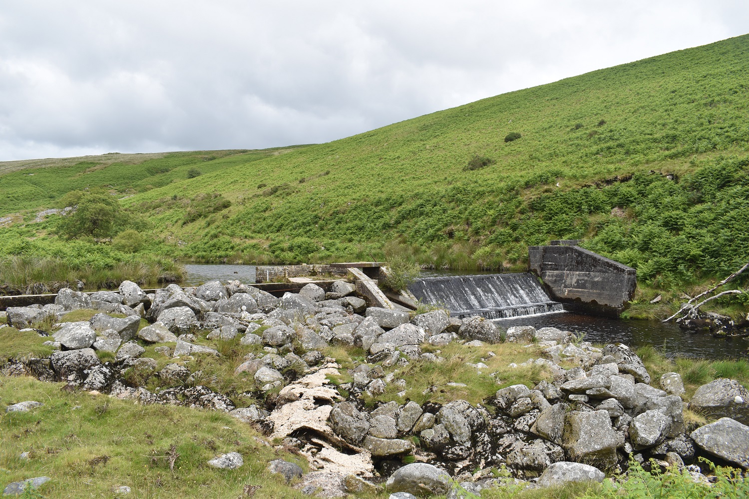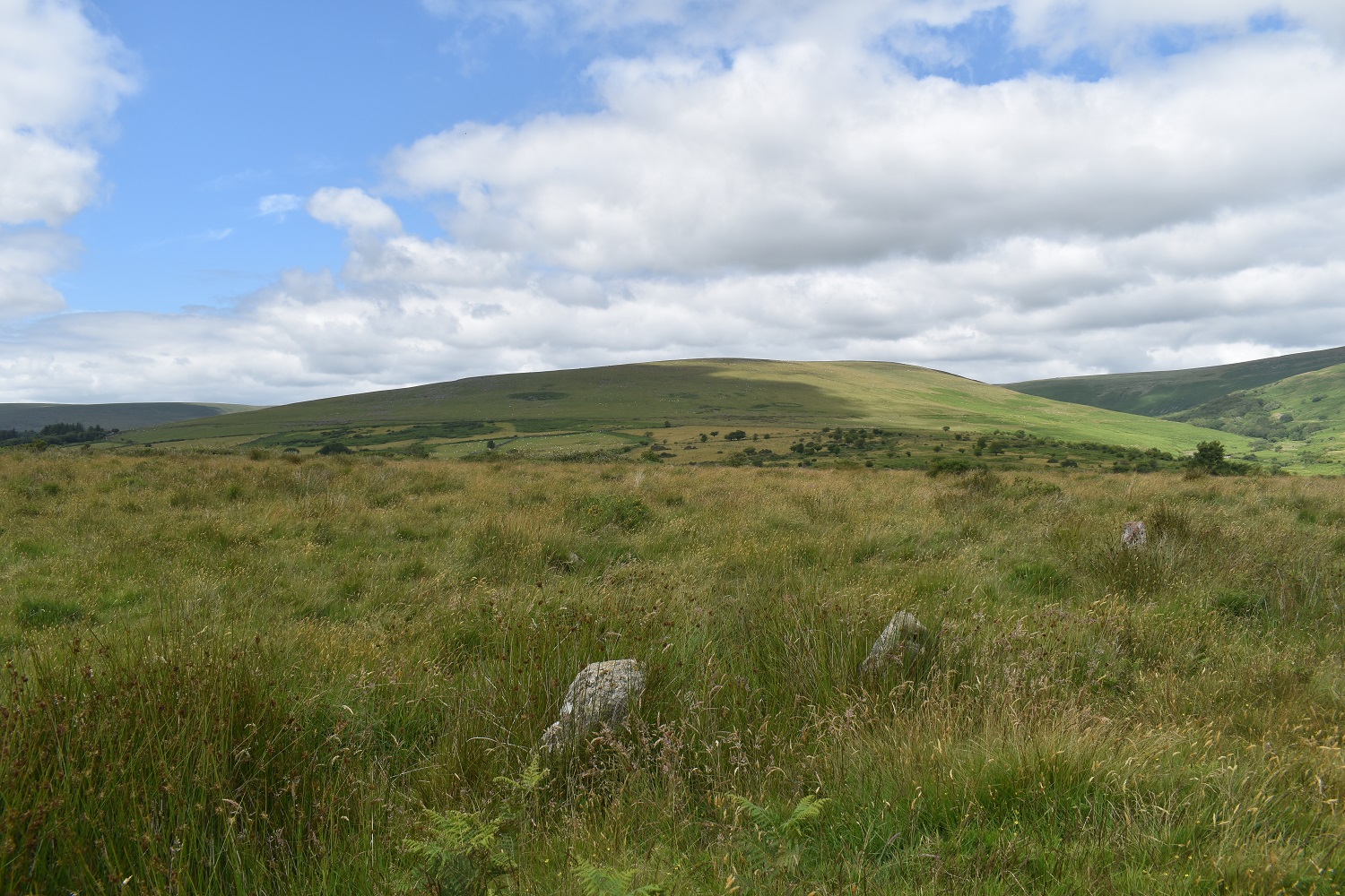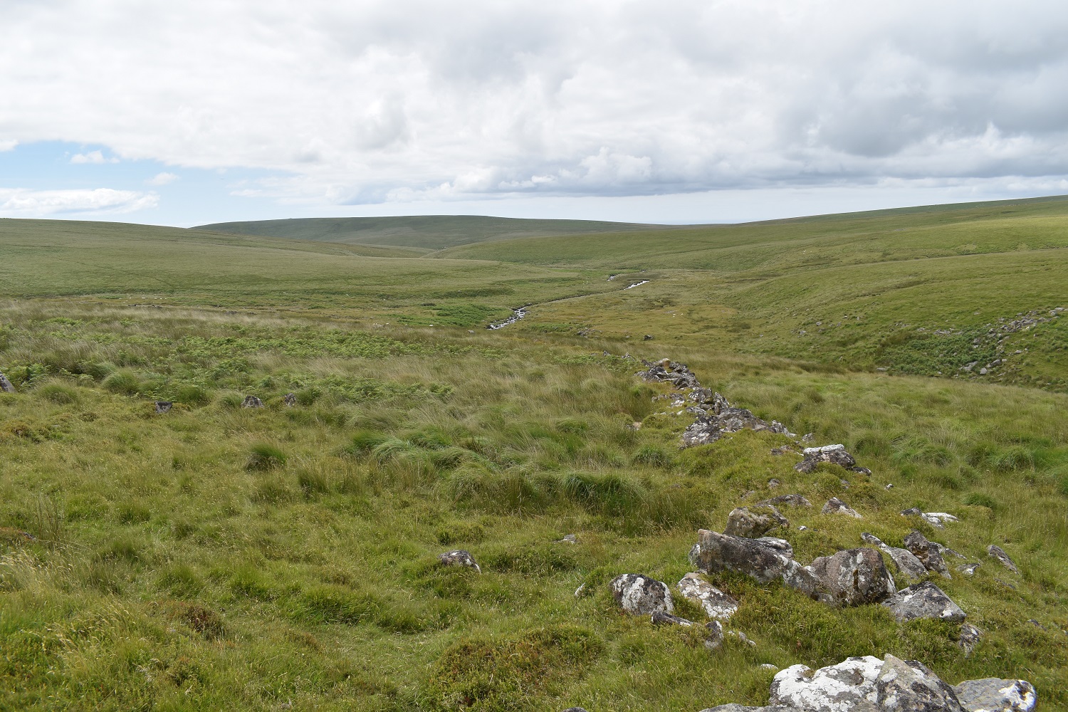 Right so its fairly early and I’m parked up, booted and ready to go. The sun is shining and its fairly warm already, I slap on some suncream and head off along the road towards CornwoodJust to Cornwood, not London!Cornwood was fairly quiet at 9.30 on a Sunday morning so I was quickly along the lane to Wisdome BridgeHeading slowly uphill along the lanes helps to gain some height easily, the butterflies were out in the sunshine, including this CommaI’d meant to do a walk in this area to check out parking options after Harford Gate car park was closed in 2021 (can only hope this decision is reversed as it makes access to the area behind Stalldown difficult to access). This is the lane to New Waste and as you can see you’ll get one car (possibly two) where the red one is up there, about 500 metres from the New Waste gateLooking across to Penn Beacon, as I head into the edge of Dartmoor proper the cloud builds a little overheadClimbing up the side of Stalldown Barrow towards the first of my stone rows. Views to Plymouth Sound from up hereStalldown Barrow Stone Row, lots of large upright stones on this one so its one of the better rows on the moorThe way I am heading, out the back of Stalldown Barrow is tough walking, lots of tufty grass and boggy in places. Those with a keen eye will see the dimple in the distance which is Redlake. Not going that far todayNow I’ve been this way twice now and both times I’ve handrailed the river at this point, (notice the tree, there are very few trees this side of the river), never ever do this, as a few metres after the tree is an area of wobbling ground sat on top of a bog. Like me you will go knee deep and have a wet sock for the rest of your day out. This was the first weekend in July, prior to the exceptionally hot batch of weather we had a week or so later, and it is still boggy at this time of the year.The boggy section on the previous photo is down there, you can just make out the tree/bush by the bend in the river. Don’t mess about down there instead stay on the bank to the right as I look back. That way as you head up towards The Dancers, your feet will be dry and you will be able to look back at this lovely view along the Erme to Sharp Tor left and Stalldown Barrow on the right.Same view as previous but now with The Dancers, this is the start of the Staldon Stone Row, said to be the longest in the world, it runs for 2 miles finishing north of here at Green HillLots of green, and one of the few paths here following the stone row northA small skipper butterfly, a few of these out here todayStalldown Barrow covering the back of the photo, River Erme on the left and the Staldon Stone Row heading that way. I’m going behind me at this pointI tried to cross the river at the point near where the stone row also crosses, there is a sort of ford there but with the high rainfall at the end of June the Erme was running a bit high. So I found about 10 large stones set out perfectly for me to traverse downstream of the ford area. A few minutes later I was stood here at Erme Pound. Now the ground in this area is horrid, the grass is thigh deep in large parts of it and you can’t see were to put your feet for large parts in this area.Here looking upstream towards Stingers Hill, the Staldon Stone Row is on the other bank over the River Erme. My only real option was to walk the banks above the tall grass, I didn’t fancy ascending up to the Two Moors Way path above me, as I only need to walk back a mile downstream to cross the Erme again by the weir. So I stayed nearer the river and picked my way around the pound and its banks, following what sheep paths I could.It was whilst trying to pick my way around the Pound that I stood on a pile of large rocks to try to see a way through the long grass. One particular rock rocked on me and as I put my other foot down to balance myself, my weight tipped the rock backwards, I fell backwards with the rock trapping my leg against another large rock. Lay flat on my back I was unable to sit up enough to push the rock away, luckily however I managed to get my left leg back to lever it away. I hobbled to this point, but I was lucky as there wasn’t anything worse than a cut below the knee and a sore leg (it bruised a day or two later).The weir on the Erme or at least the pool before it. I crossed the river down on the right here as I wasn’t sure if the weir was crossableThe weir and it wasn’t crossable, not sure it ever is unless there is barely any water heading over it.This is the good path used by the water board out to the weir, and makes a fine quick path to get you back around Stalldown Barrow. Leg still not great at this point, but I had passed my first people of this walk nowPiles Copse and Sharp Tor above. The camping in Piles Copse is currently out of bounds, hence the closure of the Harford Gate car park to help with this, however it seems that people coming here cannot read as a fire has damaged more of the area in that woodland caused by us. We are talking about an SSSI, one of 3 upland ancient oak woodlands on Dartmoor and the owners are trying to protect it, allow it to regenerate itself a bit before opening it again. Surely a few years camping somewhere else can be accommodated by people to allow this, or would it be better that we are never allowed in there again, utter clowns.looking out along the Erme in the direction of Ivybridge, the hill on the right has Tristis Rock on top, I’m heading there nextOn Burford Down now and the floor colour has changed from an ever present green to this yellowy grass which was swaying in the breeze alongside this purple headed thistles of which there were thousands sticking up like thisTristis Rock looking back along the Erme ValleyAnd the other way out to IvybridgeBurford Stone Row and Stalldown Barrow, I’d originally climbed left to right up that one earlierJust down from Tristis Rock, following a grassy path is a gate at the corner of woodland, this takes