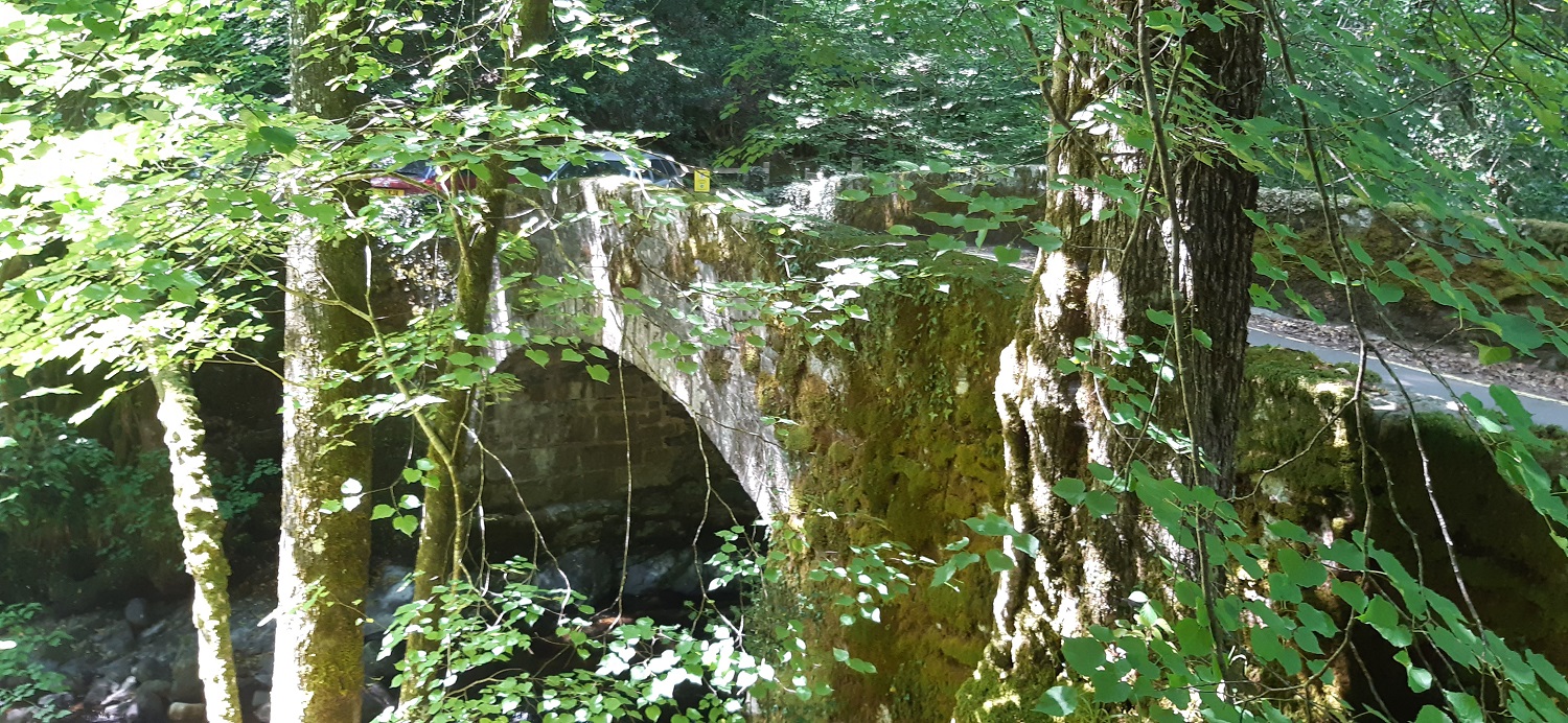 This is the lane to Buckland Bridge, its very narrow, with the odd pull off spot for parking. The obvious common sense is needed, don’t block a passing place nor a driveway, and if you can’t find a place to park, look elsewhere, the Dart is a long river.Buckland BridgeThe Webburn comes under Buckland Bridge and empties here on the left which made that section very cold indeed. However it was warm above and my youngest was straight in to cool off. The deeper water runs pretty much down the centre of this part of the riverMy eldest took his time getting in. In the end we just went over and splashed him in the shallows so he had no choice but to join usWet fun in the River DartLovely light with plenty of trees providing shade. Spitchwick is in that directionAnd a glorious scene the other way, the Dart carries on that way, looping around Holne Chase and then under Holne Bridge. All cooled off we headed home happy.