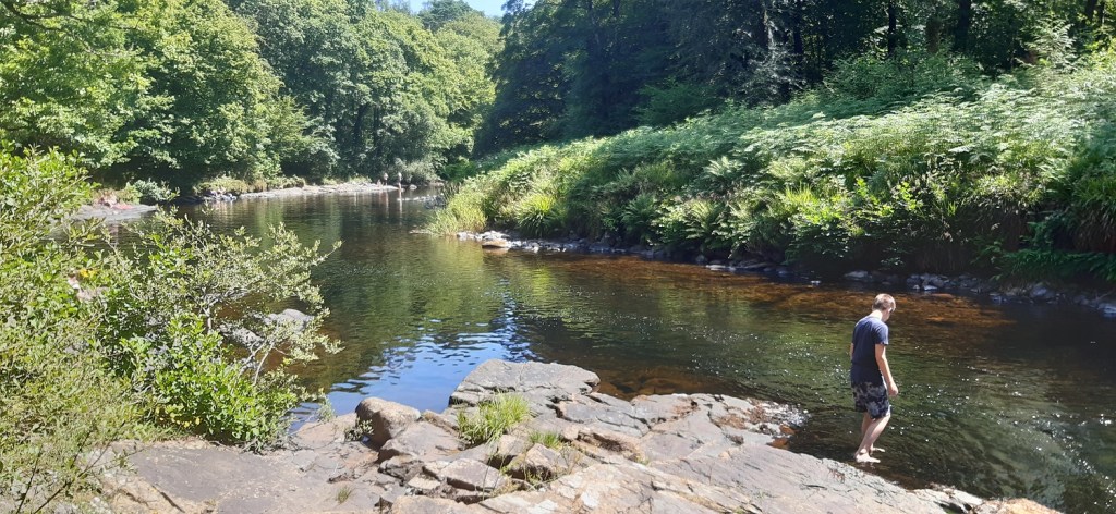 Plenty of July and now on into August has been pretty hot for us here in the south west of England, as a result I’ve avoided walking on occasions and instead headed for a swim. This one is from mid July and previous wild swim spots of Shilley Pool, Sherrah Pool, Spitchwick and Cadover Bridge have been well used by others, so instead I had a drive and found another good spot near to Buckland Bridge just downstream from Spitchwick. There were a few other people here and there are some car parking spots both on the road along the bottom and as it rises up towards Buckland in the Moor itself. They fill up quickly and we were lucky to get the last spot. The water was cool, especially compared to the air temperature but its perfect once you are in. The boys both loved it, and we will definitely be doing this more and more in the hot weather.