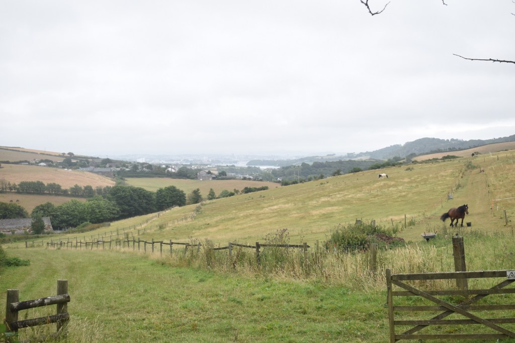A gap and gate in the hedge gave views back down to Plymouth and Millbrook