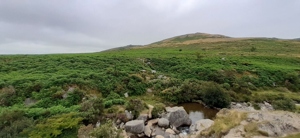 Looking back up to Brat Tor with Arms Tor behind left. The pool which would be perfect for a dip below