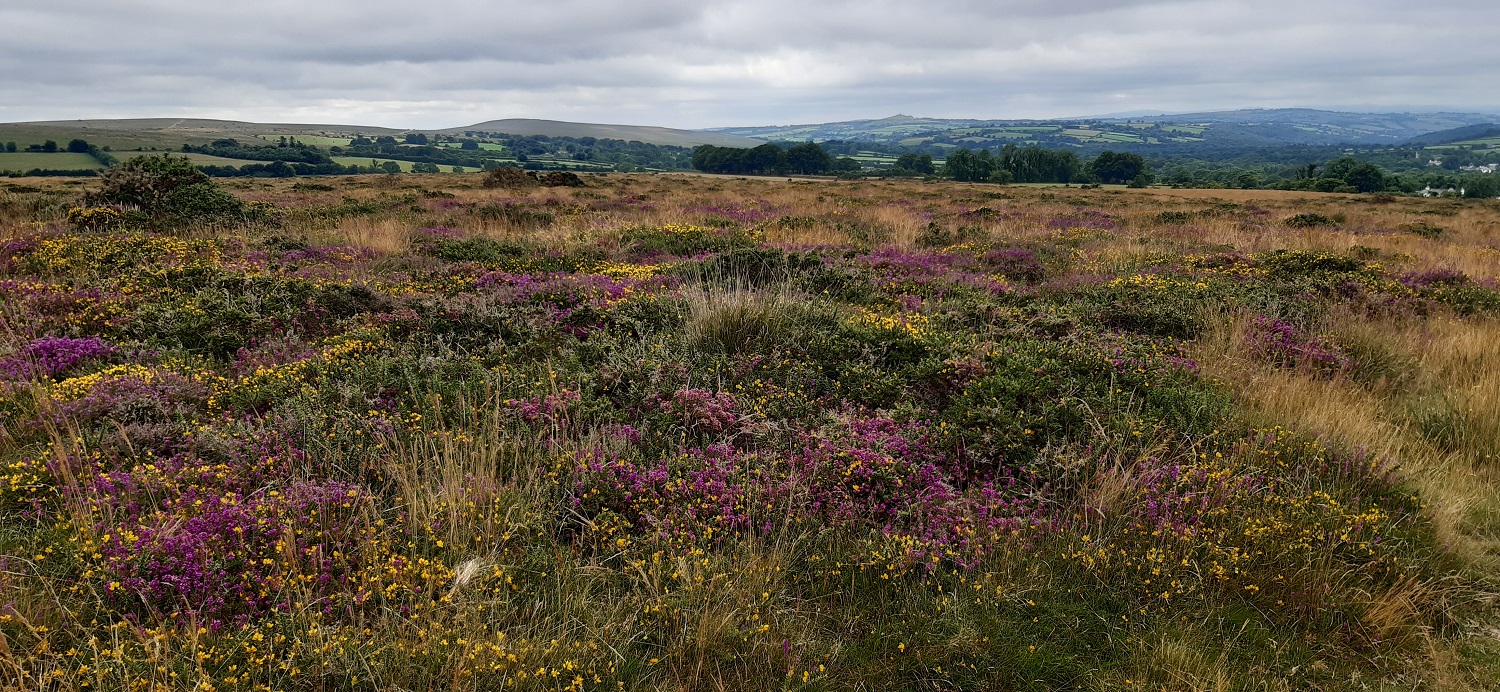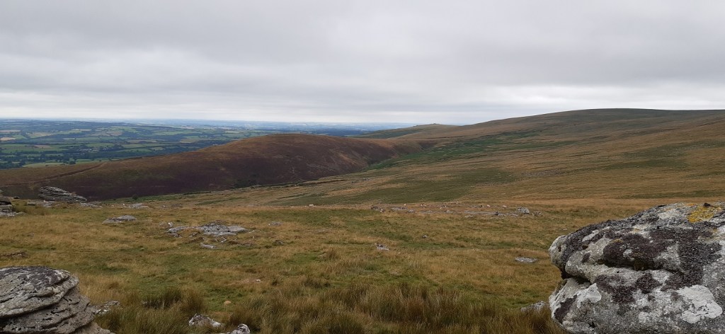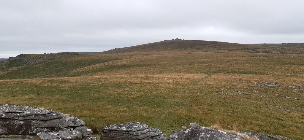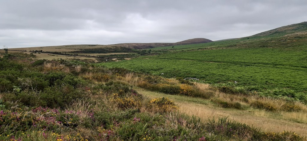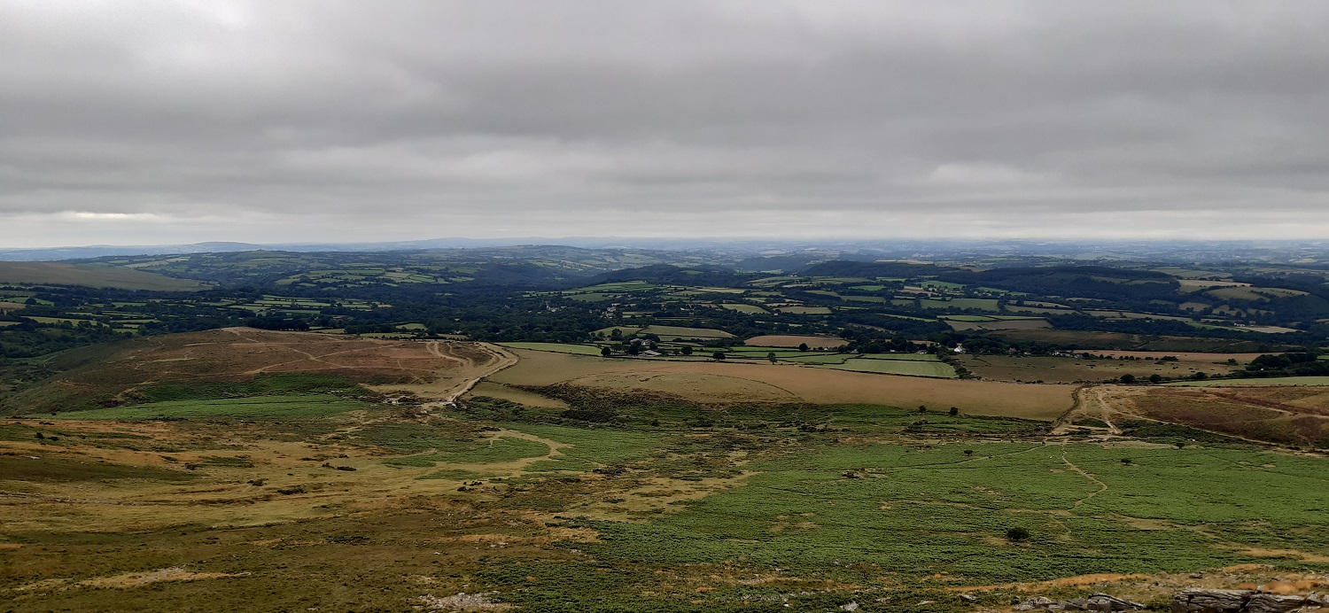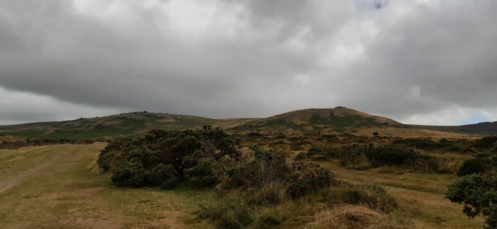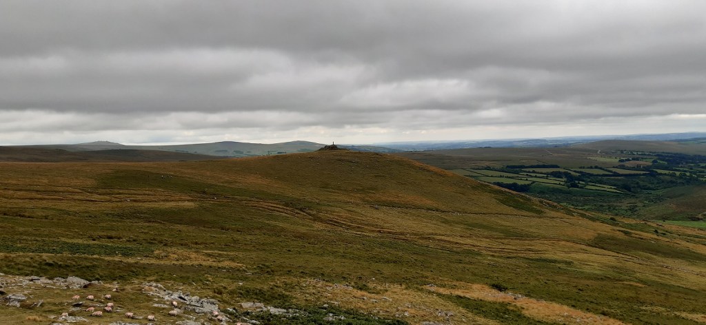 Starting out from the car park, dark clouds overhead but the views to Gibbet Hill on the left and Brentor are still good.