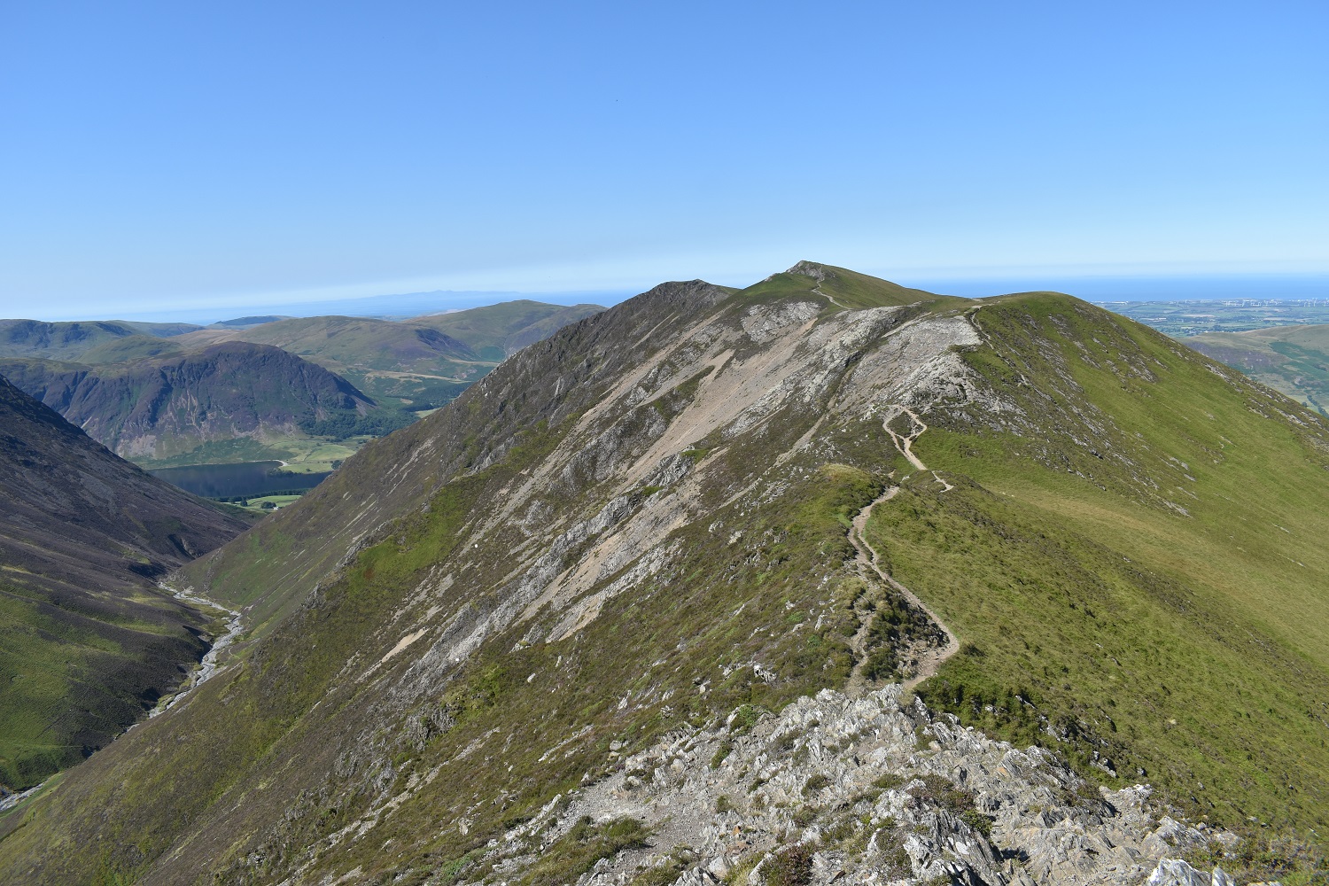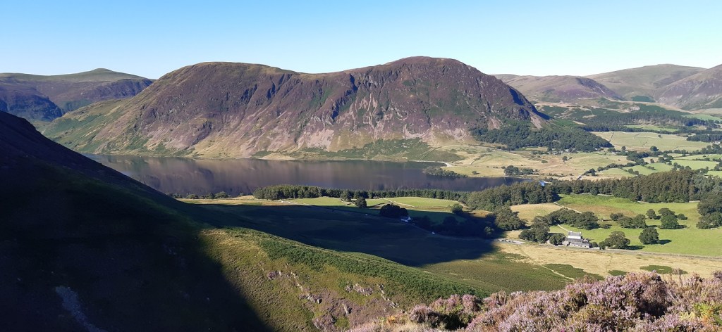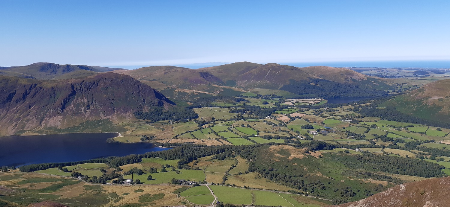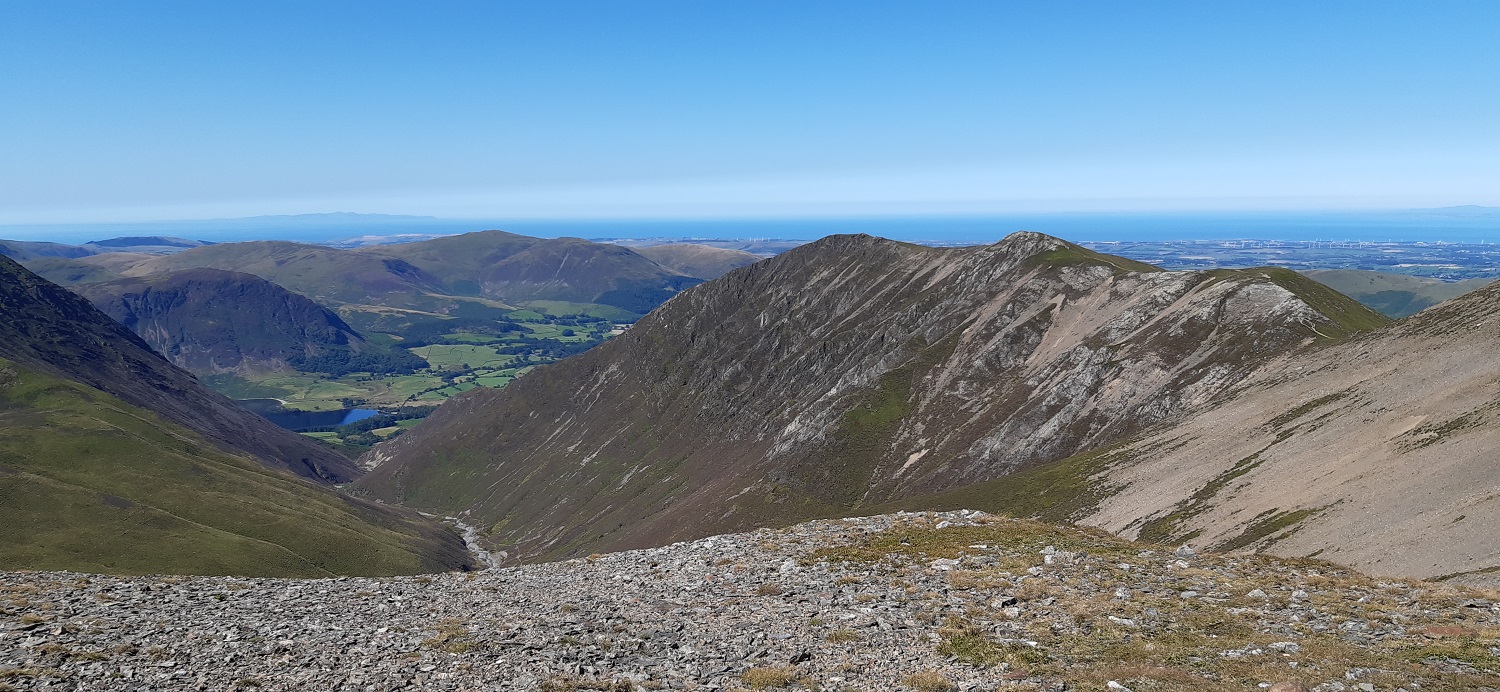 Lanthwaite Green with Whiteside behind the boys. They are both delighted at the early start as you can see. Our ascent of Whin Ben runs up that sunlit section curving upwards first to the right and then turning to the left and climbing.Low Fell and Fellbarrow where we were a few days before thisVale of Lorton as we climb Whin BenLooking across towards LoweswaterCrummock Water was a mirror on this day, with Mellbreak looking magnificent behind. The shade off Grasmoor on the left was what I hoping to be duplicating over hereGasgale Gill our return route, it was around 9am at this point and the sun was certainly showing its warmthAbove Whin Ben now, the colour of the heather was lovely up here and the view beyond was fantastic. Even in this heat the air clarity was fabAnd again that view of Loweswater on the right, Blake Fell the high point centre back and Crummock Water on the leftGasgale Gill and Liza Beck running along the bottom, I could see plenty of water coming down the gill meaning we had plenty of cooling spots for our descent. Hopegill Head back left, our second target todayThe Isle of Man in the distance beyond Blake FellTop of Whiteside, not too much sweat pouring from us as there was a nice breeze rising up Gasgale Crags and we were taking advantage of it. Lots of water consumed here and a sit before onwards along one of the best ridges in LakelandThe boys on Whiteside and the ridge behind themNorth to Scotland and Criffel in view across the Solway FirthHopegill Head on the left, then, Sand Hill then our descent route down Gasgale Gill. Crag Hill is back rightSame view from further along the ridge, the ridge gets better as you walk this way. Its not long but brilliant in this weatherGetting to the really good bitLove this photo of the boys, I remember them saying at this point that its not as bad as it looked from further back and the way ahead looks ok as well. And it was.Looking back along the route to WhitesideStraight up the front of Hopegill Head, or one of the final climbs to the summitLadyside Pike, another fine route to Hopegill Head. With Skiddaw back right as we near Hopegill Head summitSummit selfie number 2On from Hopegill Head is Grisedale Pike and Hobcarton Crags. I’d done those on my Coledale Round (here)Down to Sand Hill next with Crag Fell behindTime for an early lunch stop at 11.30am. But then again we did start at 8.30am. The Isle of Man still in view away in the distanceAfter the lunch stop we dropped to Coledale Hause and then down into Gasgale Gill, Liza Beck was visited for refilling water bottles, dunking heads, caps and tshirts. I wore a soaking wet tshirt all the way back. It was glorious. There was also a nice breeze blowing along here until we reached the far end. Gasgale Crags up to the rightLooking back along the gill to Sand Hill at the far endThe path down here wasn’t too bad. I’d heard stories that it was horrible. Not for me, some parts had been washed down but the replacement went a bit higher up, or you could drop down to the beck and walk the other side for a short section. Either way we stayed down so we could dunk hats in the waterAt the end we reached the bridge and a couple of pools to cool off in, no hesitation we were straight in for a proper soaking. Brilliant way to finish the walk, we sat under the bridge for a bit, in the shade and had something to eat and the last of our juice.Low Fell and the fells around Loweswater at the end of a fantastic walk. The ridge from Whiteside to Hopegill Head has to be one of the best in the district, not a soul on it with us unlike Striding Edge. It will live long in the memory.