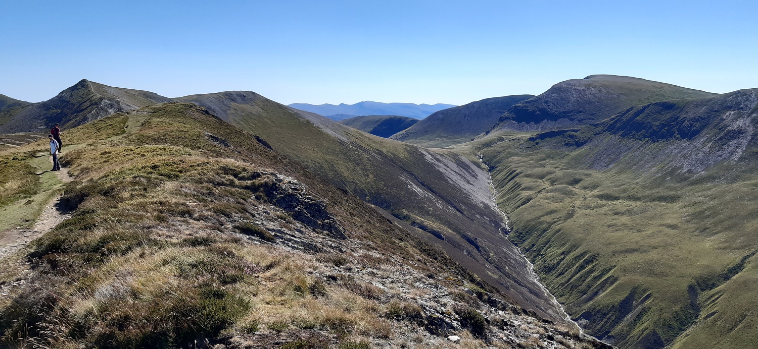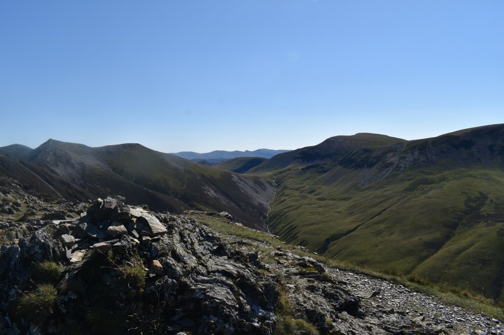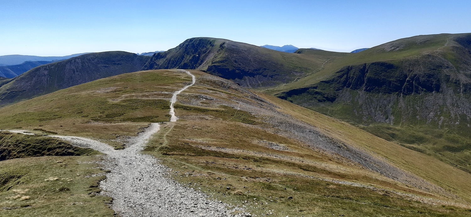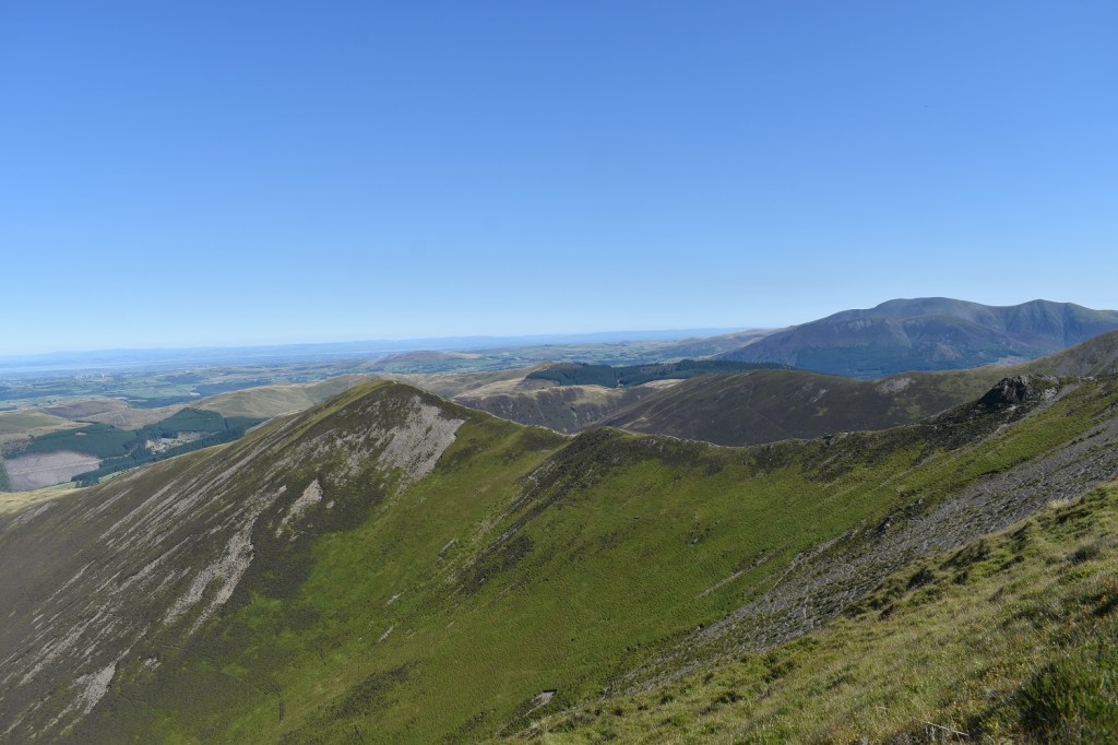 Lanthwaite Green with Whiteside behind the boys. They are both delighted at the early start as you can see. Our ascent of Whin Ben runs up that sunlit section curving upwards first to the right and then turning to the left and climbing.Low Fell and Fellbarrow where we were a few days before thisVale of Lorton as we climb Whin BenLooking across towards LoweswaterCrummock Water was a mirror on this day, with Mellbreak looking magnificent behind. The shade off Grasmoor on the left was what I hoping to be duplicating over hereGasgale Gill our return route, it was around 9am at this point and the sun was certainly showing its warmthAbove Whin Ben now, the colour of the heather was lovely up here and the view beyond was fantastic. Even in this heat the air clarity was fabAnd again that view of Loweswater on the right, Blake Fell the high point centre back and Crummock Water on the leftGasgale Gill and Liza Beck running along the bottom, I could see plenty of water coming down the gill meaning we had plenty of cooling spots for our descent. Hopegill Head back left, our second target todayThe Isle of Man in the distance beyond Blake FellTop of Whiteside, not too much sweat pouring from us as there was a nice breeze rising up Gasgale Crags and we were taking advantage of it. Lots of water consumed here and a sit before onwards along one of the best ridges in LakelandThe boys on Whiteside and the ridge behind themNorth to Scotland and Criffel in view across the Solway FirthHopegill Head on the left, then, Sand Hill then our descent route down Gasgale Gill. Crag Hill is back rightSame view from further along the ridge, the ridge gets better as you walk this way. Its not long but brilliant in this weatherGetting to the really good bitLove this photo of the boys, I remember them saying at this point that its not as bad as it looked from further back and the way ahead looks ok as well. And it was.Looking back along the route to WhitesideStraight up the front of Hopegill Head, or one of the final climbs to the summitLadyside Pike, another fine route to Hopegill Head. With Skiddaw back right as we near Hopegill Head summitSummit selfie number 2On from Hopegill Head is Grisedale Pike and Hobcarton Crags. I’d done those on my Coledale Round (here)Down to Sand Hill next with Crag Fell behindTime for an early lunch stop at 11.30am. But then again we did start at 8.30am. The Isle of Man still in view away in the distanceAfter the lunch stop we dropped to Coledale Hause and then down into Gasgale Gill, Liza Beck was visited for refilling water bottles, dunking heads, caps and tshirts. I wore a soaking wet tshirt all the way back. It was glorious. There was also a nice breeze blowing along here until we reached the far end. Gasgale Crags up to the rightLooking back along the gill to Sand Hill at the far endThe path down here wasn’t too bad. I’d heard stories that it was horrible. Not for me, some parts had been washed down but the replacement went a bit higher up, or you could drop down to the beck and walk the other side for a short section. Either way we stayed down so we could dunk hats in the waterAt the end we reached the bridge and a couple of pools to cool off in, no hesitation we were straight in for a proper soaking. Brilliant way to finish the walk, we sat under the bridge for a bit, in the shade and had something to eat and the last of our juice.Low Fell and the fells around Loweswater at the end of a fantastic walk. The ridge from Whiteside to Hopegill Head has to be one of the best in the district, not a soul on it with us unlike Striding Edge. It will live long in the memory.