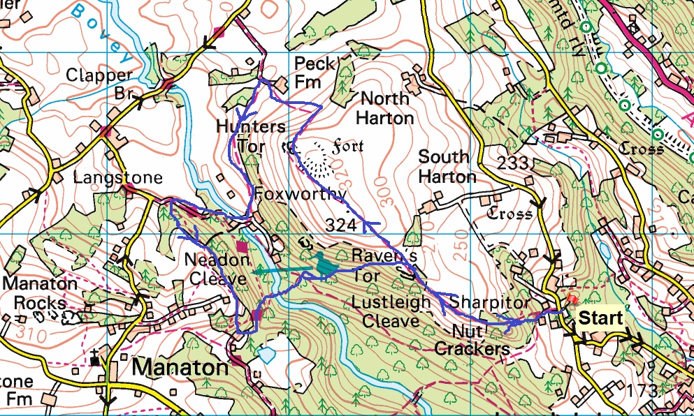 Distance – 4 1/2miles    Start time – 10:30am   Time taken – 4hrs  Highest Point – Foxworthy Tor 321m