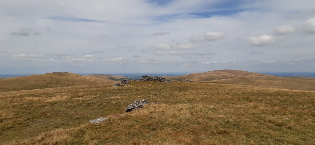 Leaving Whitehorse Hill I look across to the top of Dartmoor, with High Willhays and Yes Tor in sight