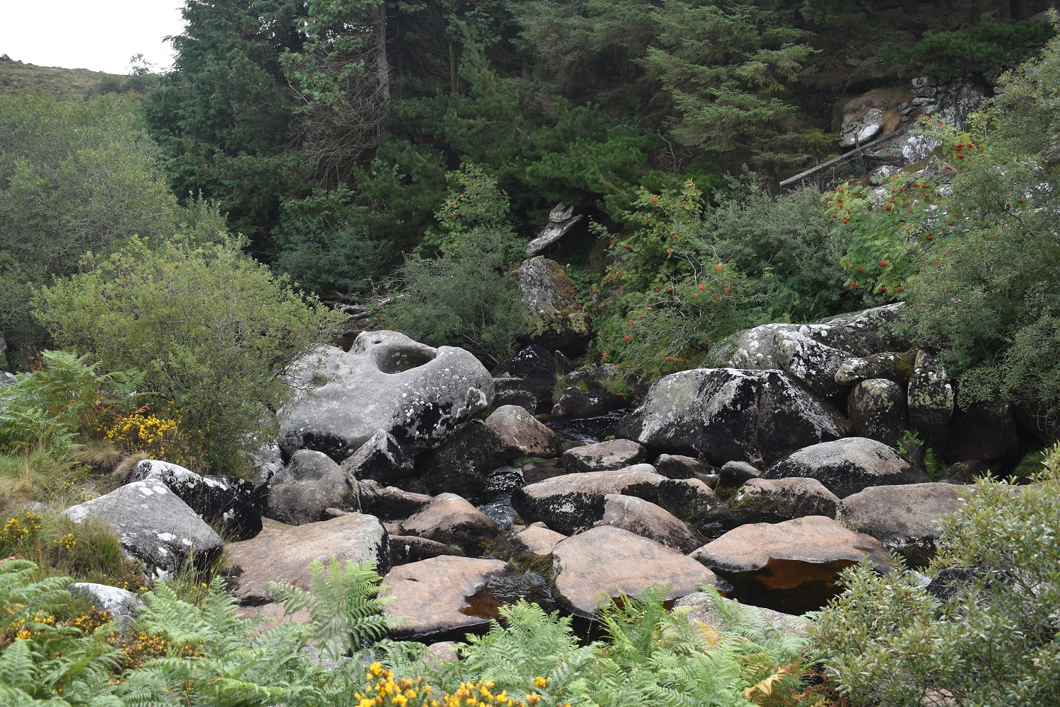 The end of a list and one which I’d probably only found out about when I was actually half way through completing it. The Dartmoor 365 list will take you everywhere across Dartmoor and I mean everywhere. Villages, tors, woodlands, valleys, churches, ruins, streams, pools, bridges, crosses, farms and one particular square with nothing in it (Wilderness – G7). It is just a brilliant list, climbing mountains or tors has a familiarity about it, not this list. You will need to walk lanes to get all these spots, in fact there were lots of walks that I did, that didn’t once set foot on a moorland pasture. Others where you are miles from a road. I’m a bit sorry to see the end of this list, I loved walking the lanes and looking at the houses and the views back to the tors. I also loved heading off into Dartmoor proper and picking off a square by visiting something that was in-between tors or off to the side of the normal path. This last walk was the Walla Brook, a stream that wriggles across Gidleigh Common, boggy in places and very boggy in others. We’d just had the driest summer for quite a while so it seemed a good idea to head out on a sultry day to finish the list off. As I was heading out and across the Common, I figured that Watern Tor needed a revisit as I’d not been since 2018! I then headed up to Whitehorse Hill and then a loop around picking off other tors as I went, finally finishing at Scorhill Circle. As for what’s next on my list of to do’s, I’ve got the coastal path and Wainwrights to finish and lets face it I might as well do the 365 all again!