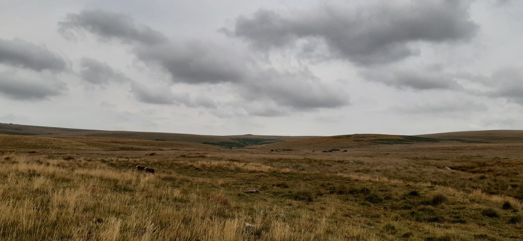 Its a short but boggy walk to Hangingstone Hill, here’s the military hut on the left with Cut Hill and Fur Tor on the horizon
