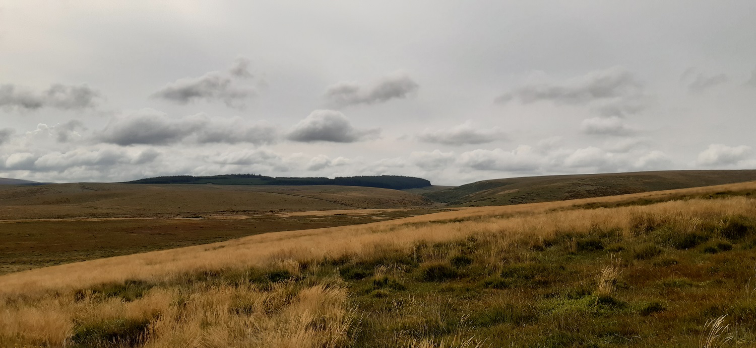 Fernworthy Forest on the left and the basin that holds the North Teign River immediately in front