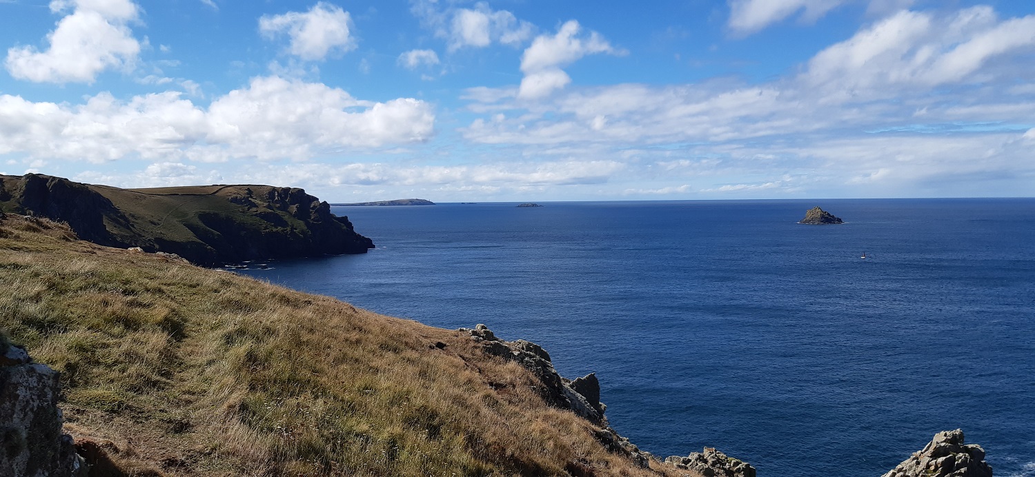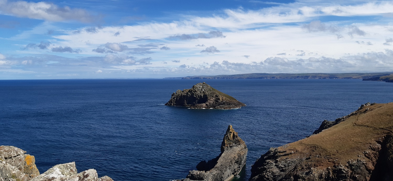 Port Quin, the rocky beach and the tide is inDoyden Point is up on the left here with Kellan Head on the right Linda looking across Port Quin Bay towards Rumps PointThe castle on Doyden PointTrevan Head looking out to the AtlanticThe Mouls is the island off Rumps Point, loving the dark blue of the sea. Pretty much every step brought a new spectacular view