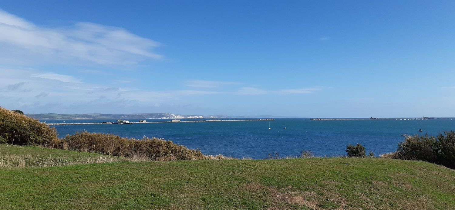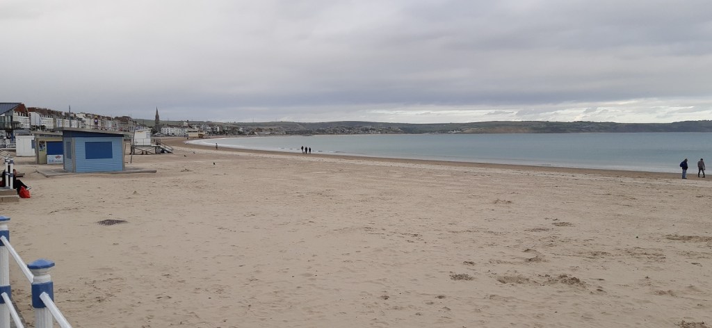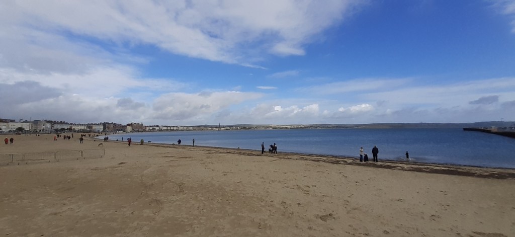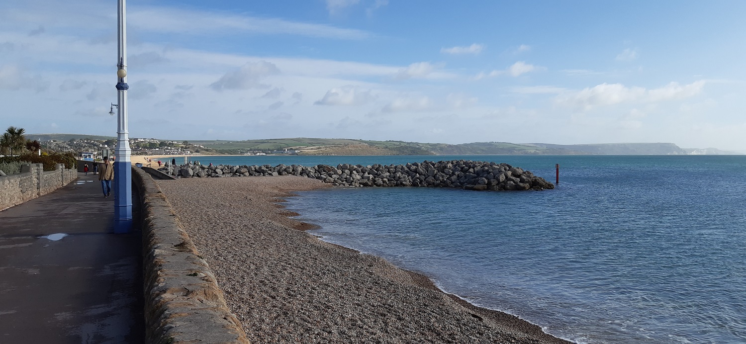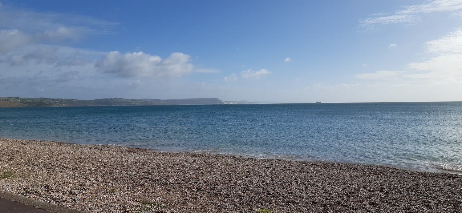 Starting out along the promenade looking across to St Alban’s HeadWeymouth Bay, with Durdle Door and Lulworth Cove over that way