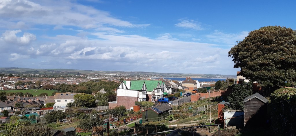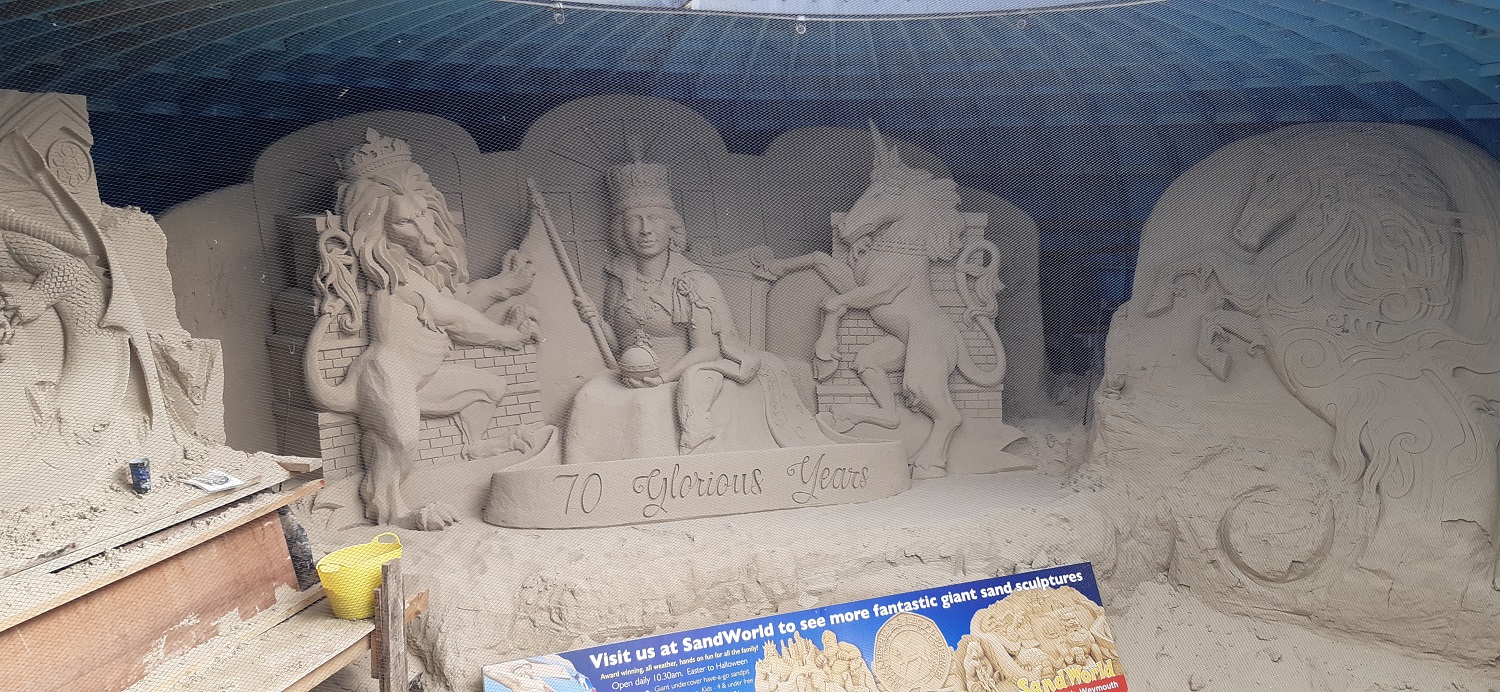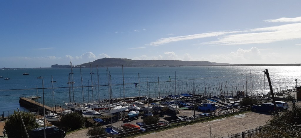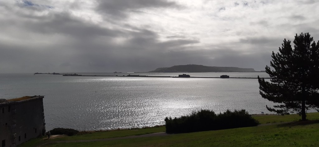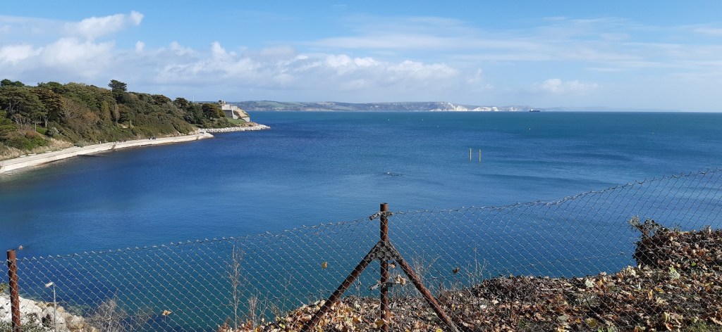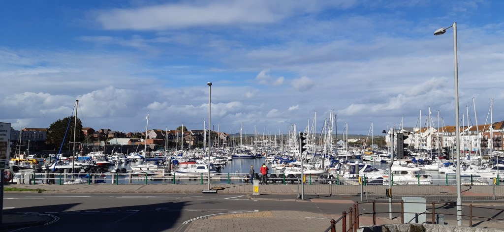 I saw these sand sculptures last time I was here with the boys, they had been changed to reflect the reign of Queen Elizabeth IIAll around Weymouth BayWe headed along the harbour and crossed this bridge, this was a lovely section of the walkThe harbour part of Weymouth, plenty of pubs and cafe’s around hereOut to sea and the white cliffs around Durdle Door stand out across the bayDon’t know why but I keep reading this as Not the fort!!Looking across to Portland and Portland harbour, the darker clouds are clearing a bit now as we head over to the road that leads out to PortlandGlorious coves and beaches around this part, a few out swimming as well, showing how warm it was still in early OctoberCoastguard station and Portland harbour behindSandsfoot Castle we stopped here in the cafe for a cold drink and some food. The castle itself stems from the 1500’s and was completed under order of King Henry 8th.Lovely views over Portland harbour, which hosted the sailing in the Olympics in 2012Across the harbour to the Portland promontoryPlenty of people kite surfing with a huge cruise liner in port at the backChesil Beach up on the left, Wyke Regis on the right, the coastal path itself wriggles around the right hand side of this picture heading away into the distanceIt was superb walking along here, although I have no idea if those huts, shacks, wooden houses over there are a permanent residence for people or just some sort of fishing hutLooking back towards Portland. Portland Bill is away back rightWe turned inland here to head up into Wyke RegisLooking over the back part of Weymouth towards ChickerellWe both liked the grren roofed building and the views to Weymouth Bay beyondWeymouth MarinaThis photo was taken a couple of hours or so after the last after we’d had a drink in a nice bar and then found fish and chips to eat away from the seagulls. All that was left was the short walk back along the promenade to the hotel