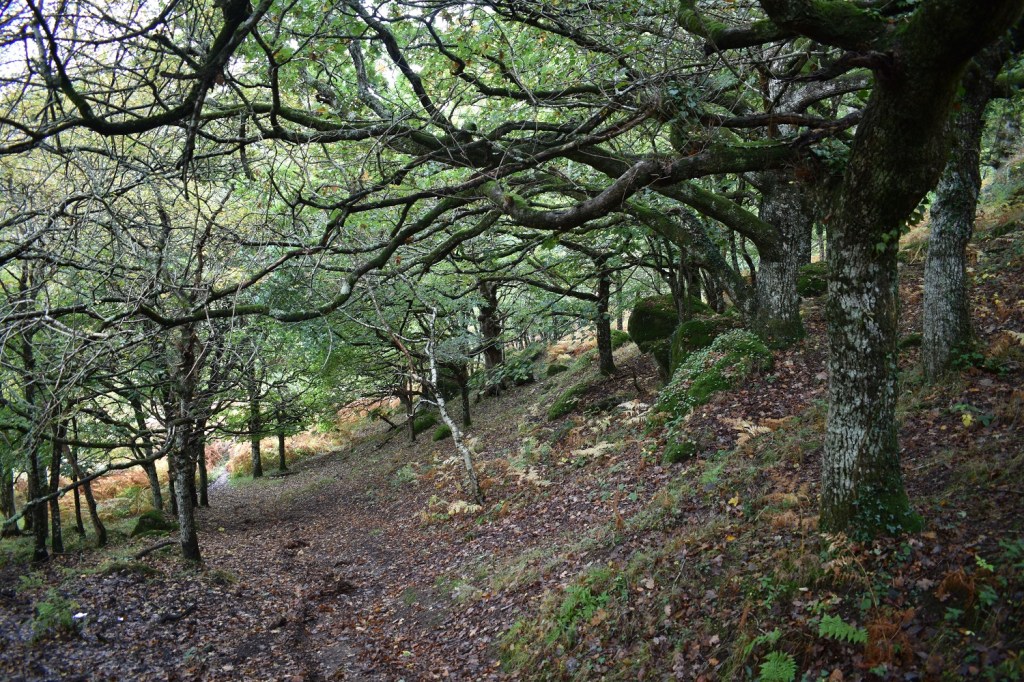We then climb the path steeply up through the woods to Whiddon Park Tor, the start of the path is tricky to find, you first need to cross the Iron Bridge and turn right, a clearing will appear on your left, head up that and then up into the trees, the path improves as you climb and you might see it across from you, so it can be easier to find it slightly higher up