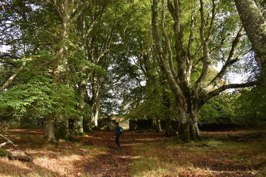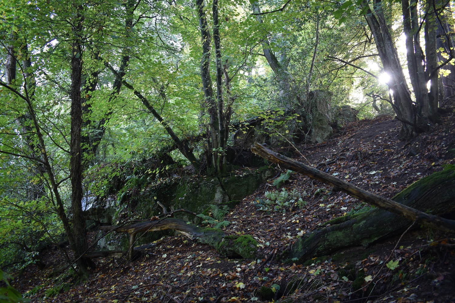 We hand railed the trees heading towards Cranbrook Castle. Cosdon Beacon back left and Drogo again in view, the valley holds the River Teign