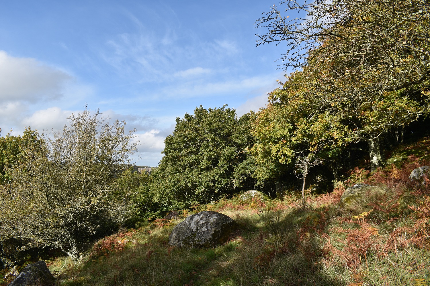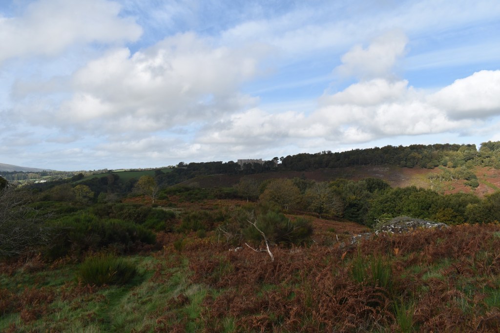 Whiddon Wood Tor is up in the trees there, you can see Castle Drogo between the trees on the left