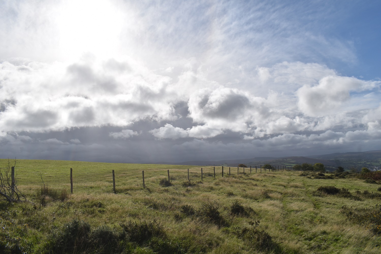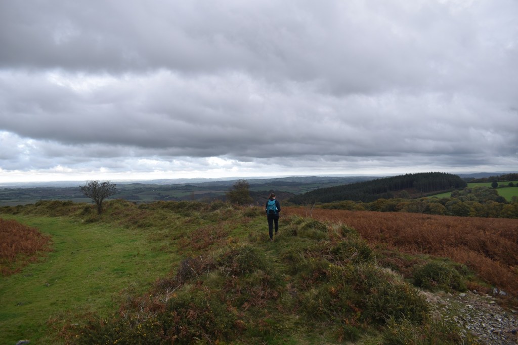 On Cranbrook Castle/Uppacott Down here, the dark clouds were just behind us so we headed down to the right to the gate off and 100 metres from the car. As we sat in the car eating our sandwiches the rain fell heavily, it was a good choice not to carry on down to Fingle Bridge and onwards, instead we finished a good walk in the dry