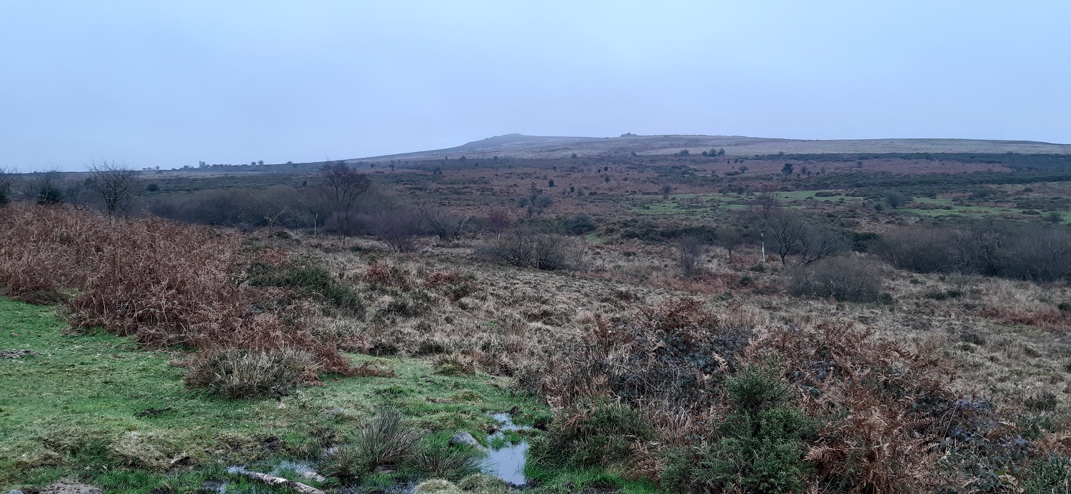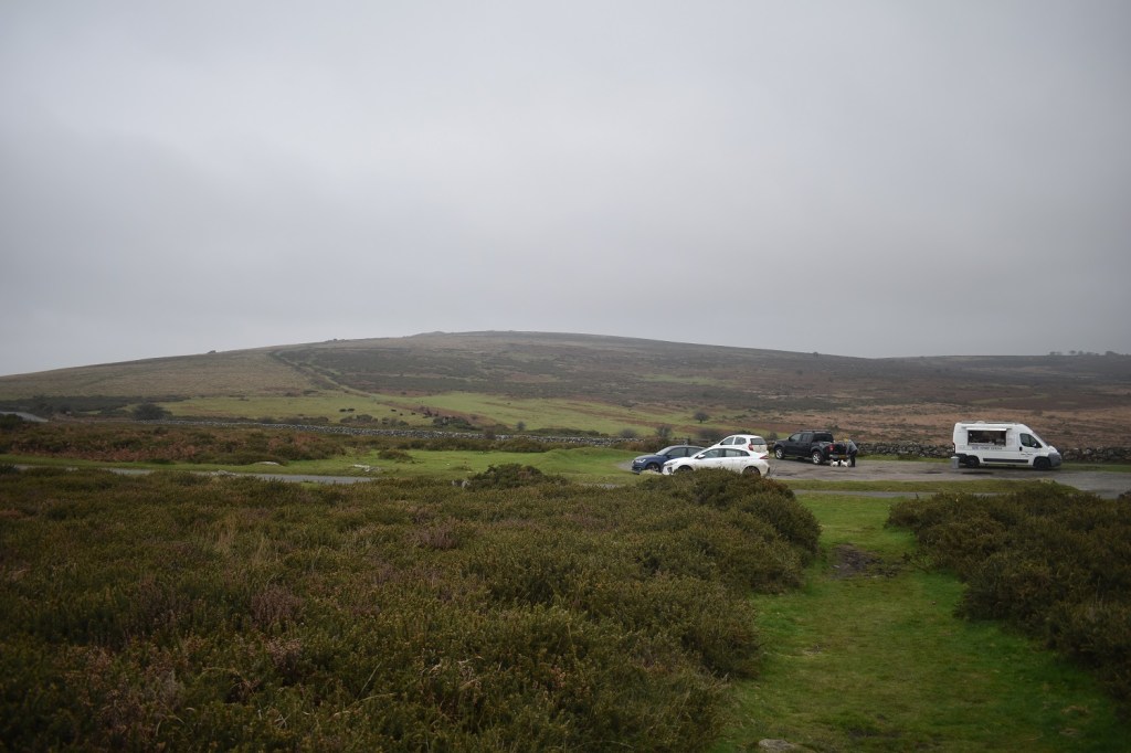 The car park at Cold East Cross, Rippon Tor behind as we start out towards Buckland Beacon