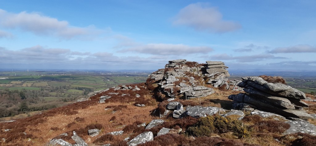 A lower part of Hawk’s Tor and Kilmar Tor stretched across the back