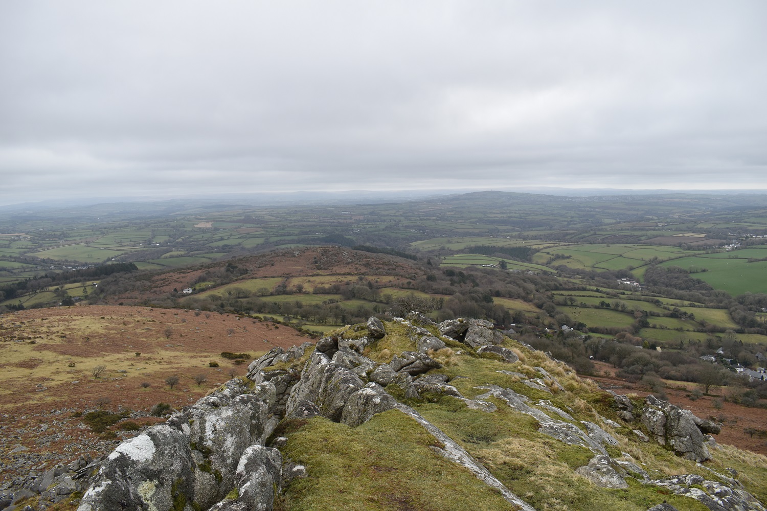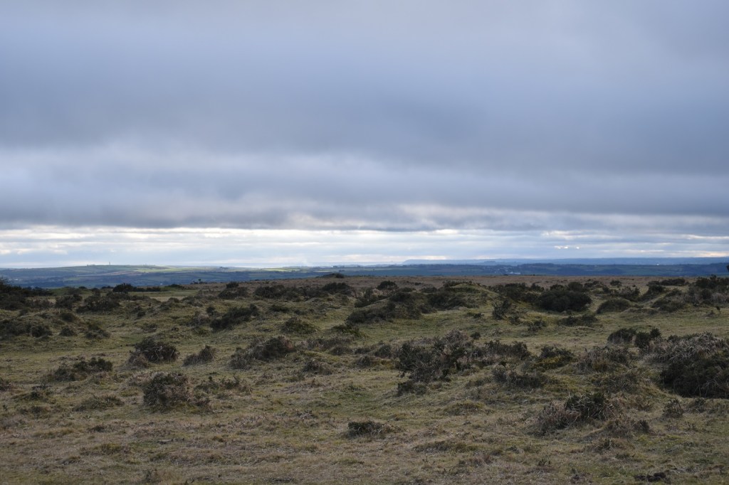From Sharp Tor looking east, we could just make out some of the tors on Dartmoor from here despite the cloudy, hazy views