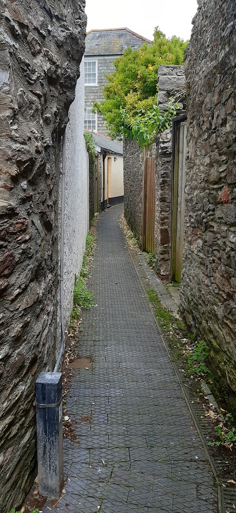 Along the little lane and next to, what looks like, the town walls