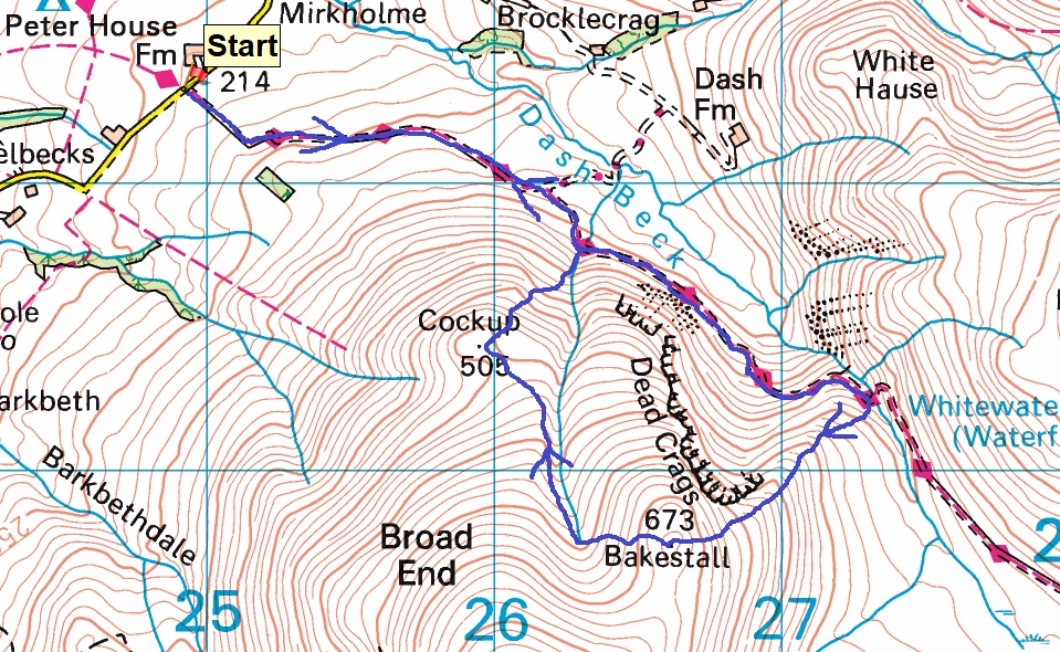 Route – Whitewater Dash falls – Bakestall – Cockup – Peter House Farm