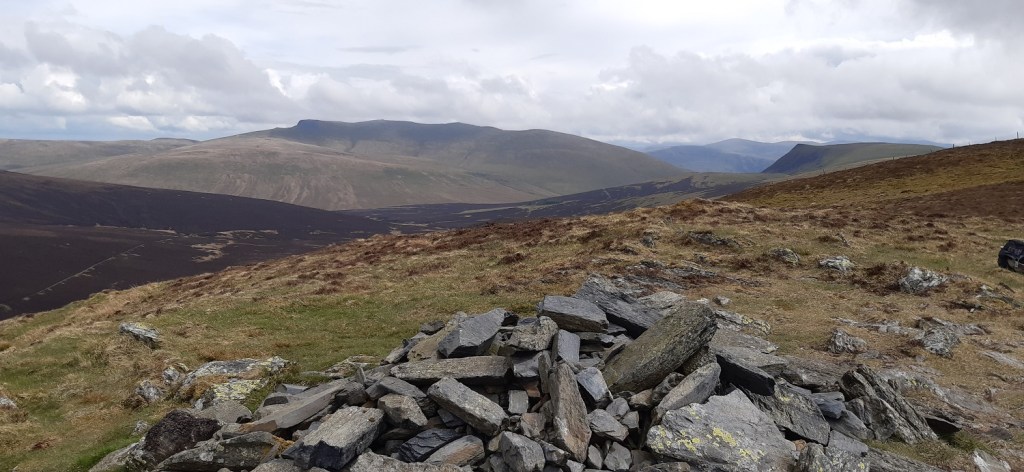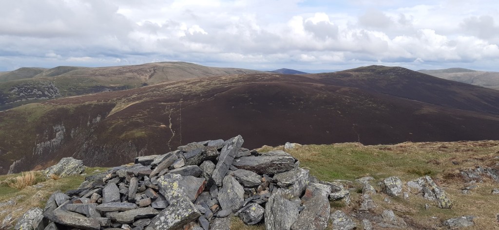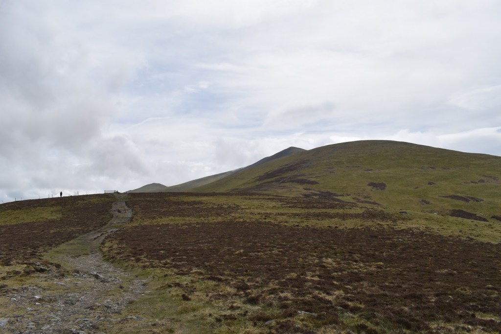 Looking back out to Binsey from Dash Falls. Dead Crags is on the leftLooking out the back of Dash Falls into the Back O’Skiddaw, Blencathra has a cloud top and Lonscale Fell and crags is the pointy fell on the rightAnd as we climb Bakestall the cloud clears over BlencathraBakestall reached and a summit selfieBakestall summit with Overwater ahead as is Binsey and Scotland is in the distance.Uldale Fells, the drop down to Dash Falls is between us and Little Calva straight ahead, Great Calva is back right and Knott is the high point in this area centre left. Originally we had planned on ascending Bakestall when we walked Great Calva back in November but with the rain on that walk the 10 miles turned into a war of attrition and we binned this ascent. So instead we are here on a more convivial dayBlencathra looking splendid from the backside. The Helvellyn ridge can be seen through the gap between Blencathra and Lonscale FellLooking up towards Skiddaw with Skiddaw Little Man back leftLooking down towards the area around Orthwaite and Binsey as we start to descendBakestall up on the left as we descend a scrappy path and a non existent pathIn the centre of the photo is a Hercules aircraft banking as it flies north against the yellow slopes of BinseyLooking back to Dead Crags and Dash Falls as we walk out along the trackMore little scamps with their motherFurther along the path looking backAnd the last photo looking to Bass Lake and Sale Fell, at the start of a week near to Santon Bridge to pick off all that is left around Wasdale, a fantastic week to come.