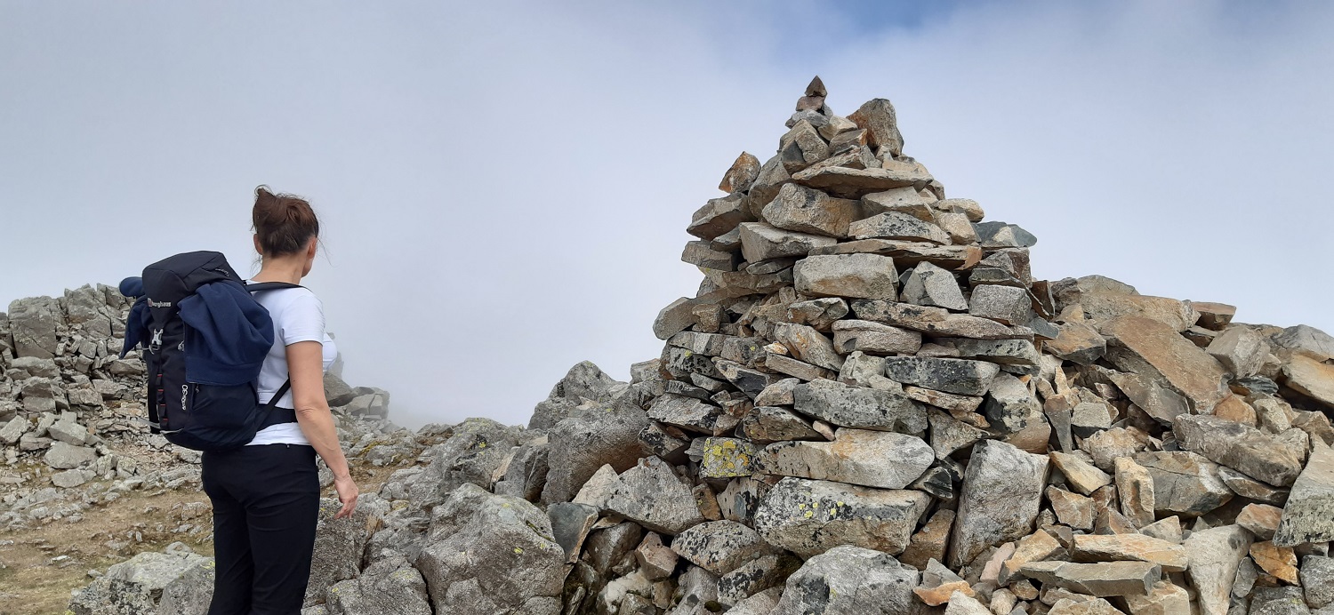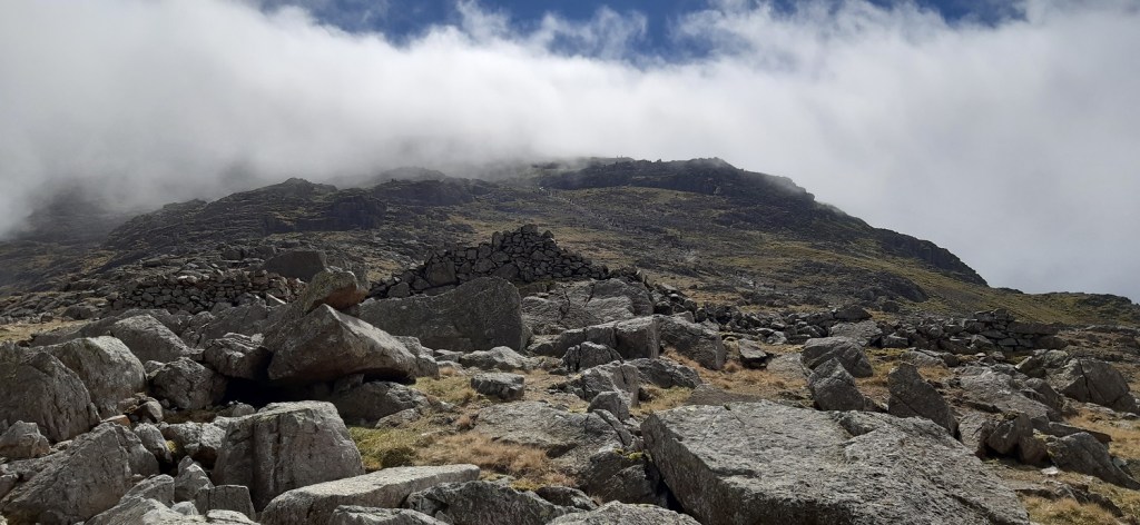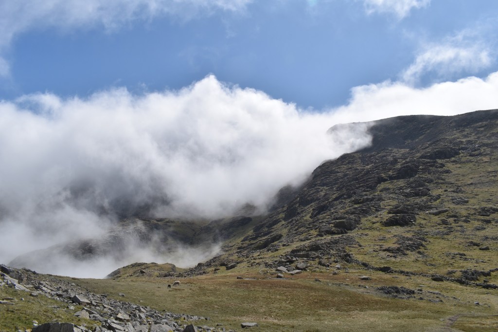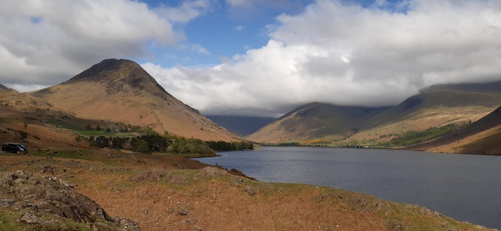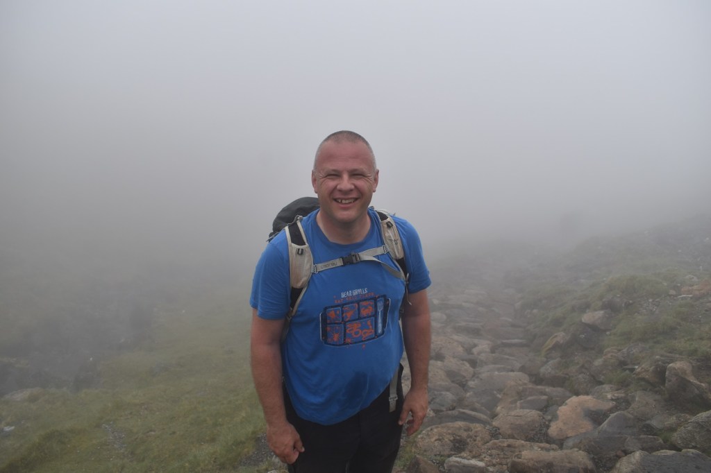 Day 3 in the Lakes and 3 walks already, after yesterday with a long walk of 12 miles but not too much steep walking, today was different. A short walk of only 6 miles but a never ending staircase trudge both up and down. The only break from the constant line of people heading up to Scafell Pike, was the detour off to collect Lingmell which was my 197th Wainwright. This one was missed on my first ascent of Scafell Pike via the Corridor Route, back when I wasn’t really bagging Mr Wainwright’s list, which does seem rather foolish when you look at things. Linda also had never been up Scafell Pike, and as we were staying at Irton Hall, at the other end of Wasdale, it seemed like a good opportunity to correct these things. With all the other fells that I had to conquer in Wasdale, this walk was set for the bank holiday Sunday, which may have been the one busy day here, as people watched the Coronation the day before. The weather was checked and the report was for cloud to lift in the afternoon and as we weren’t far away we planned to arrive at Brackenclose around 9ish and easily get a parking spot. One of those things came true as we found an easy space in the car park and booted up. One thing about climbing Scafell Pike by this direct route is its popularity. It is one long stream of walkers, all travelling at different speeds and with varying different levels of clothing and kit. One girl had only a pack of Wurthers Original to power her to the top, another lad had a litre of water (which he’d consumed most of by the crossing of Lingmell Gill on the way up to Hollow Stones). One lady heading up in flat slip on smart shoes and an overcoat and one guy who had a sound system with him, no doubt assuming that we all needed to hear his incredibly bad taste in music. Its not a path I, nor Linda, would choose again. I hated being followed, almost pushed up and down the mountain by walkers wanting to get past me. I mentioned at the top that we’d succeeded with the parking, however the second part was that the cloud did not lift, or it did briefly before dropping again. We hardly got any views from the higher parts of the walk, and it only cleared as we hit the 400 metre contour on the way down, this probably left a bitter taste when looking back at the walk, however it did hide the long gaggle of people looking to summit the tallest mountain in England, which was a blessing. Scafell Pike is the highest and all who succeed should be congratulated, but I will come in a different way if I come here again.