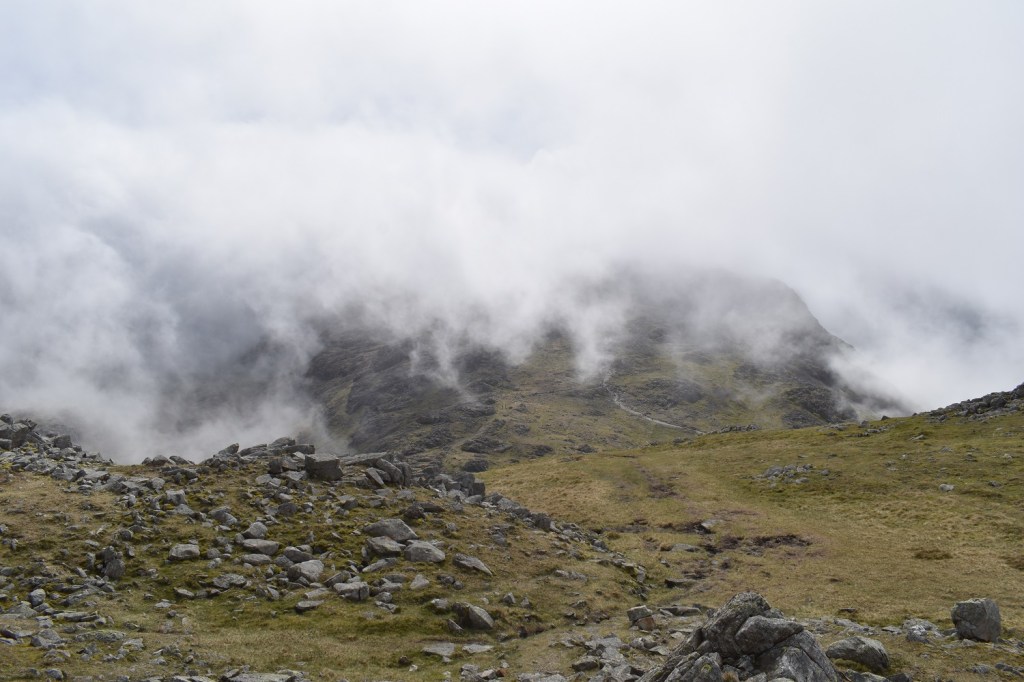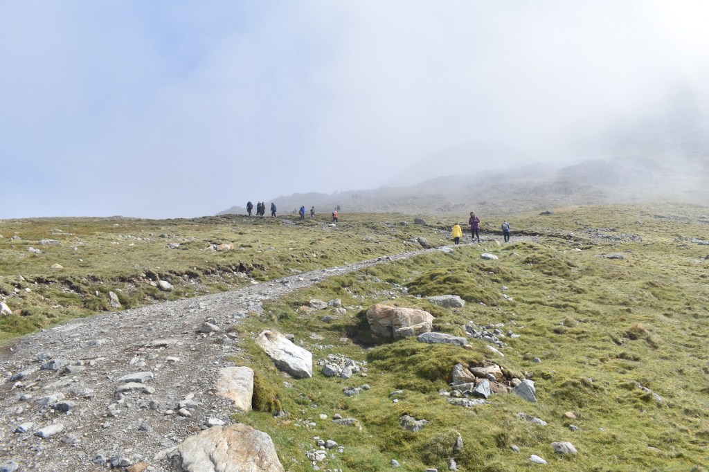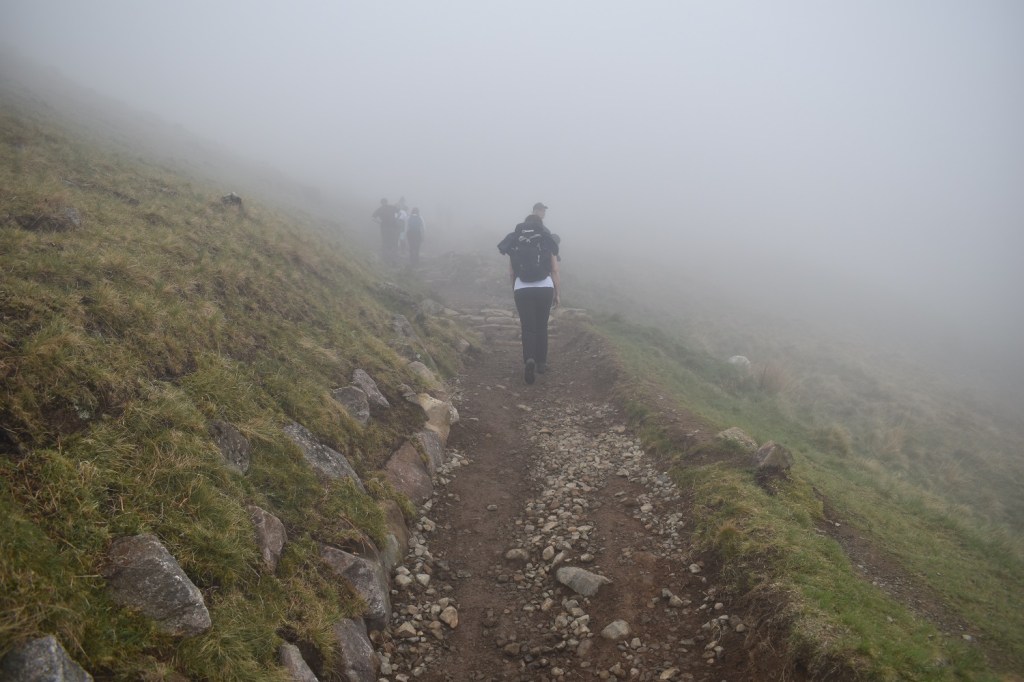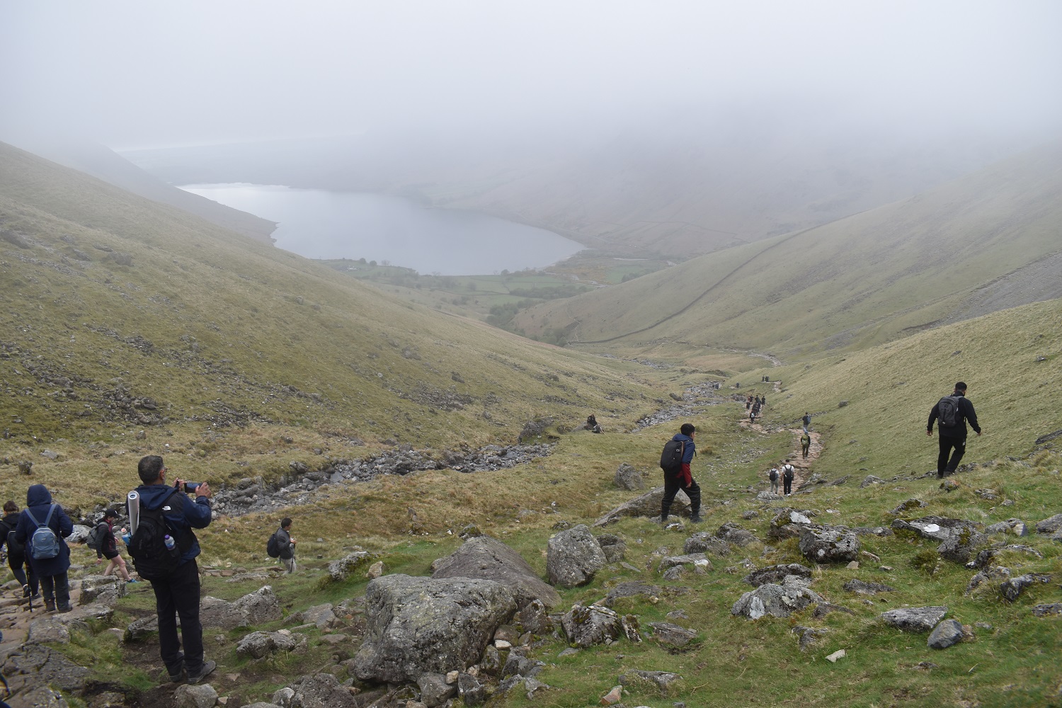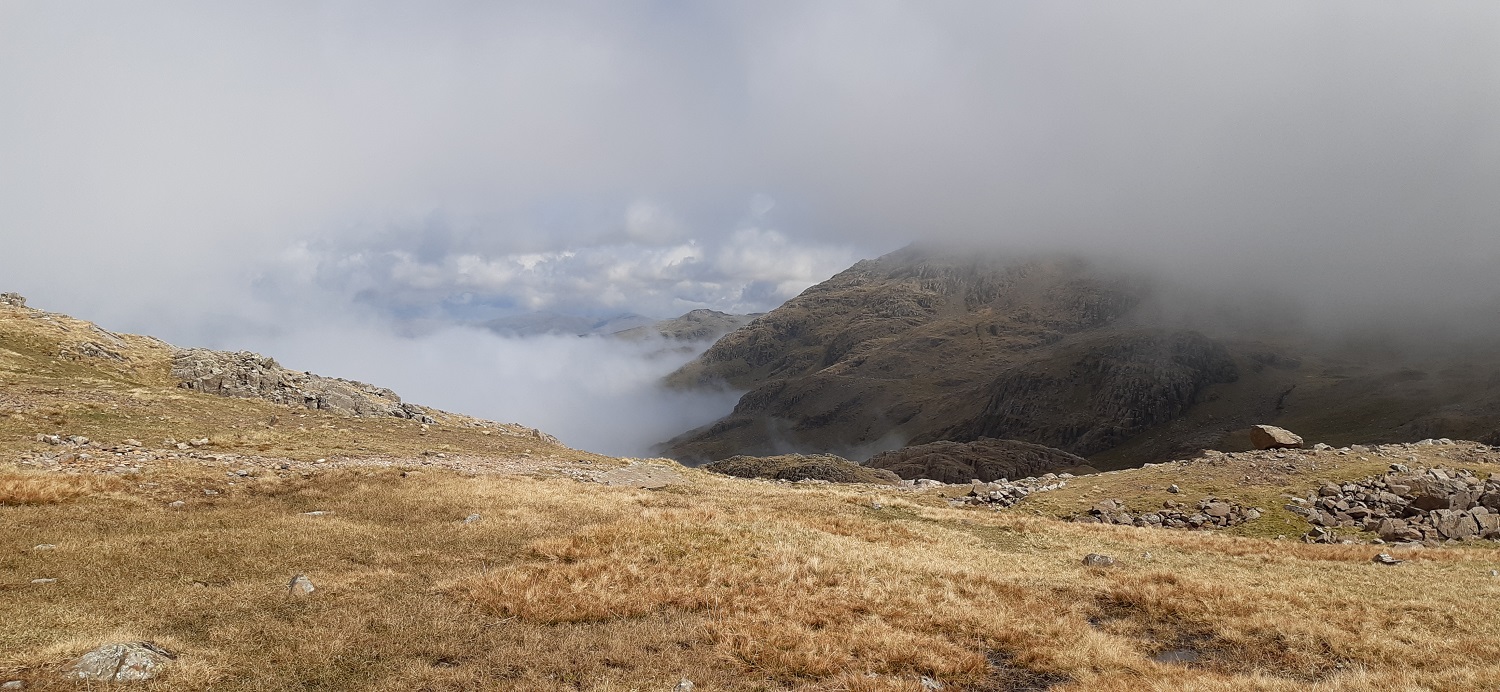 Shame after the misty shots that it didn’t clear a bit more to see the views down to Piers Gill of Lingmell. But you can’t have everything. The sheer number of people heading up this way is an experience in itself
