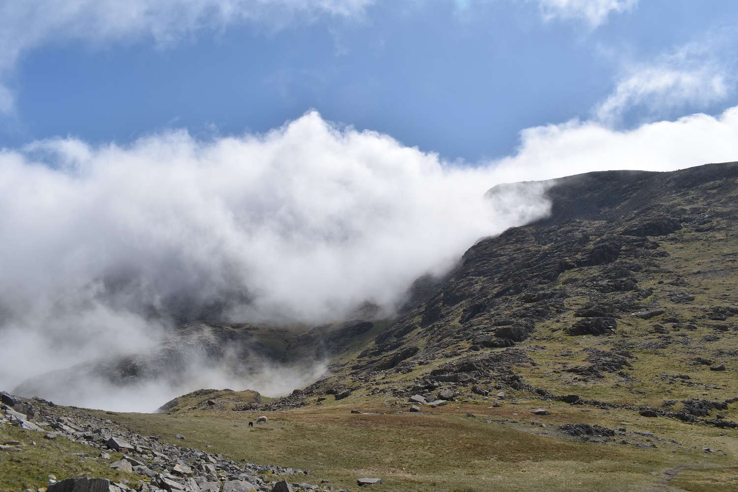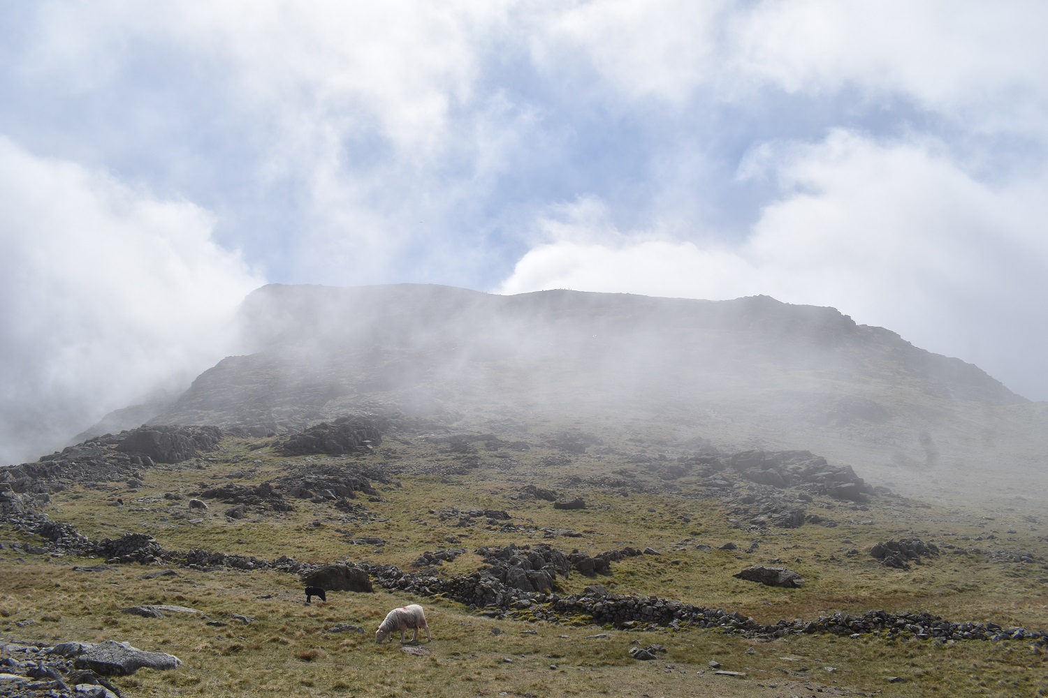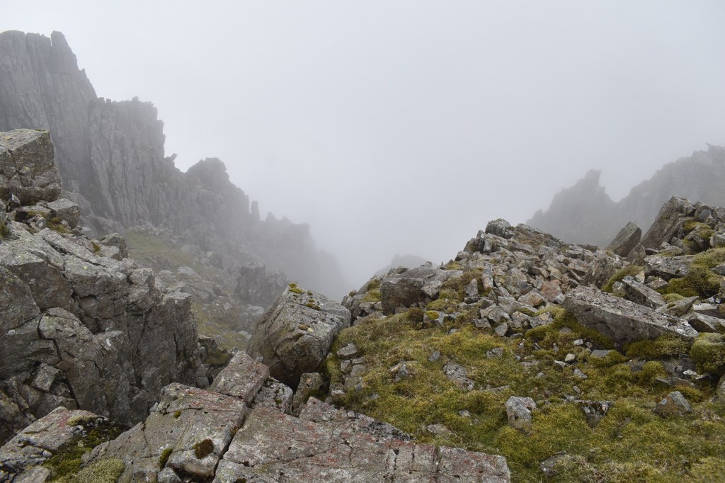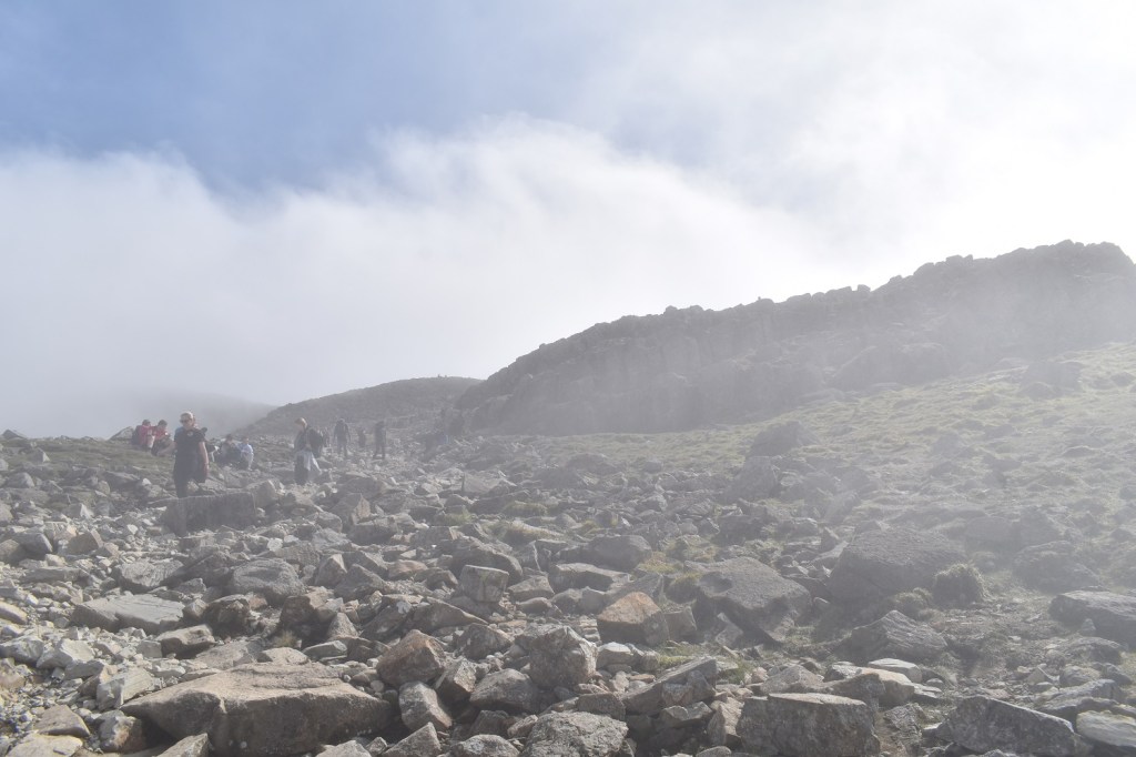 Shame after the misty shots that it didn’t clear a bit more to see the views down to Piers Gill of Lingmell. But you can’t have everything. The sheer number of people heading up this way is an experience in itself