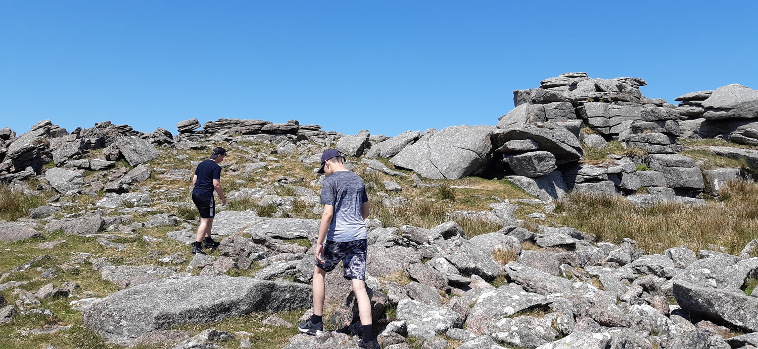 A blisteringly hot day near the start of June but another chance to get the boys out and away from phones and GCSE revision for my eldest. I was looking for a place to take them, and for some reason I’d never taken them to the Staple Tors, which seems baffling considering we’ve been walking on Dartmoor for at least 14-15 years. Time to put that right. We took plenty of liquid with us and applied the suncream, devising a shortish loop around. We had a choice of Cox Tor or Little Roos Tor for the return leg and we went for the latter as it meant we could also walk past the Merrivale Quarry and pick up the Dartmoor 365 square of Sett Makers Bankers. Nothing too tricky or demanding about this walk, which was good considering the heat. We yapped as we always do, lots of varying topics this time, about exams (my eldest was about halfway through his GCSE’s at this point), also games and holidays we had booked in the summer (Snowdonia). A lovely couple of hours with the boys.