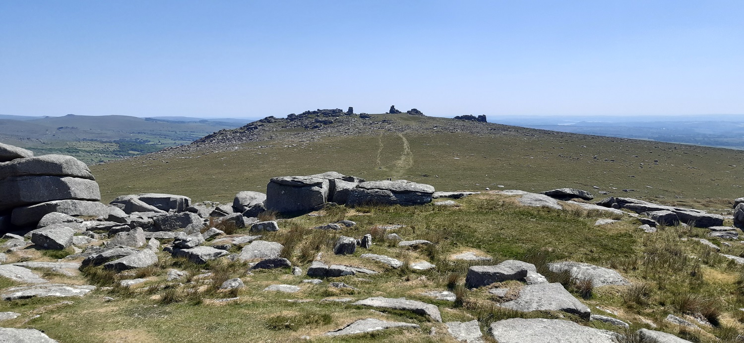 This car park is pretty much under Little Staple Tor and gives easy access to the Staple Tors. Peek Hill is in the distance, with Vixen Tor the nearer outcrop behind the wall and Pew Tor over on the rightLittle Staple Tor is quickly conquered with views out to CornwallMiddle Staple Tor is next up, lots of rock piles hereMiddle Staple Tor looking to the mast on North Hessary TorGreat Staple Tor. Probably one of the most photographed of the Dartmoor Tors, certainly the one they would put on a shortbread tin if Dartmoor had one. You might be able to see my youngest climbing up the notch, he was getting up on the next to top rock before I told him we were heading off to Roos TorRoos Tor catching shade in the distance from the only cloud that was in the sky. Looking over there from Great Staple TorRoos Tor looking back to the large piles and avenue tor of Great StapleAgain looking to North Hessary Tor, this time from Roos TorSelfie, we managed to find a bit of shade and a nice breeze back here, as my eldest’s hair will testifyWilderness at the back of Roos Tor. Back left is Great Links Tor, with White Tor nearer on the leftDown at Little Roos Tor, the River Walkham is down there before the land rises up to the sprawling outcrops of Great Mis TorFollowing the grassy path towards Merrivale Quarry and the hamlet of Merrivale comes into viewMerrivale Quarry, or Tor Quarries as it was known, it ran for over one hundred years and only closed in 1997. Granite from here built Portcullis House and New Scotland Yard in London.Looking over to Kings Tor with Peek Hill back rightThe boys have walked off towards the car whilst I was searching for the Sett Makers BankersSett Makers Bankers, not the best ones in this area, better ones are a bit further west in a line between Middle Staple Tor and the car park. But basically these were used by men to make setts for road building. They would kneel and cut smaller sett blocks from larger granite pieces. Back breaking workBack at the car and one last look across the sunbathing man to the mast at Princetown on North Hessary Tor