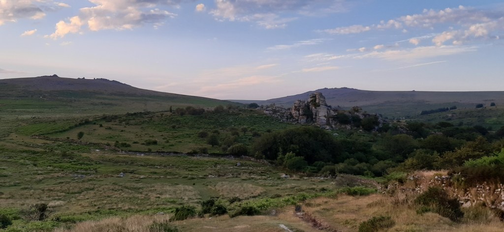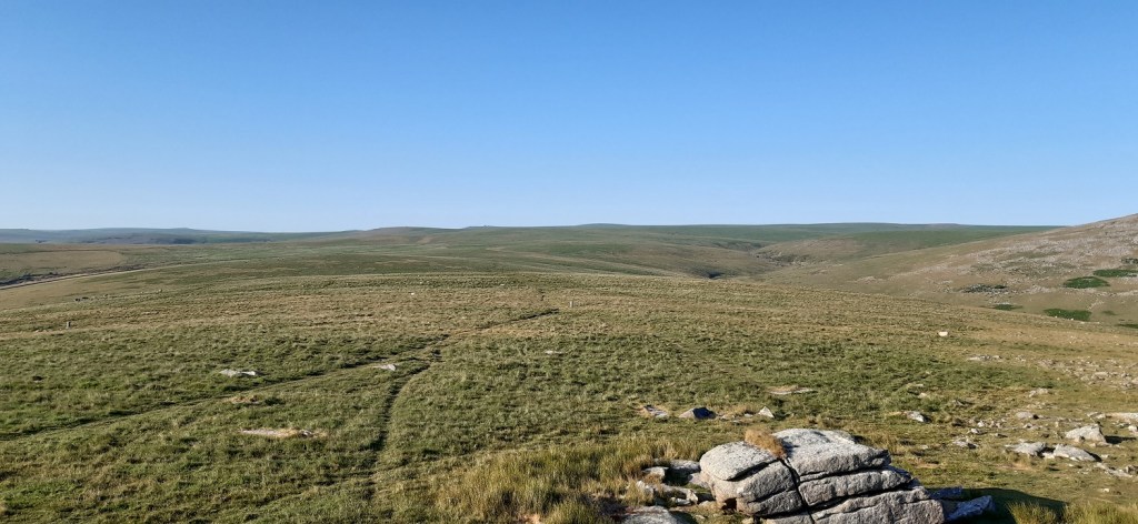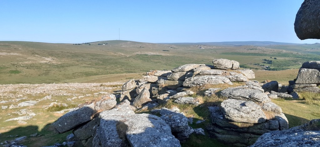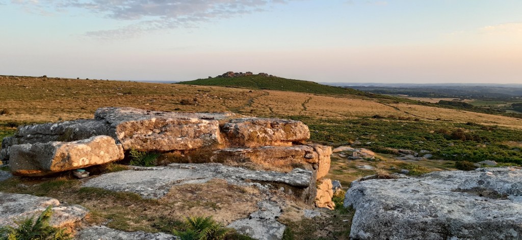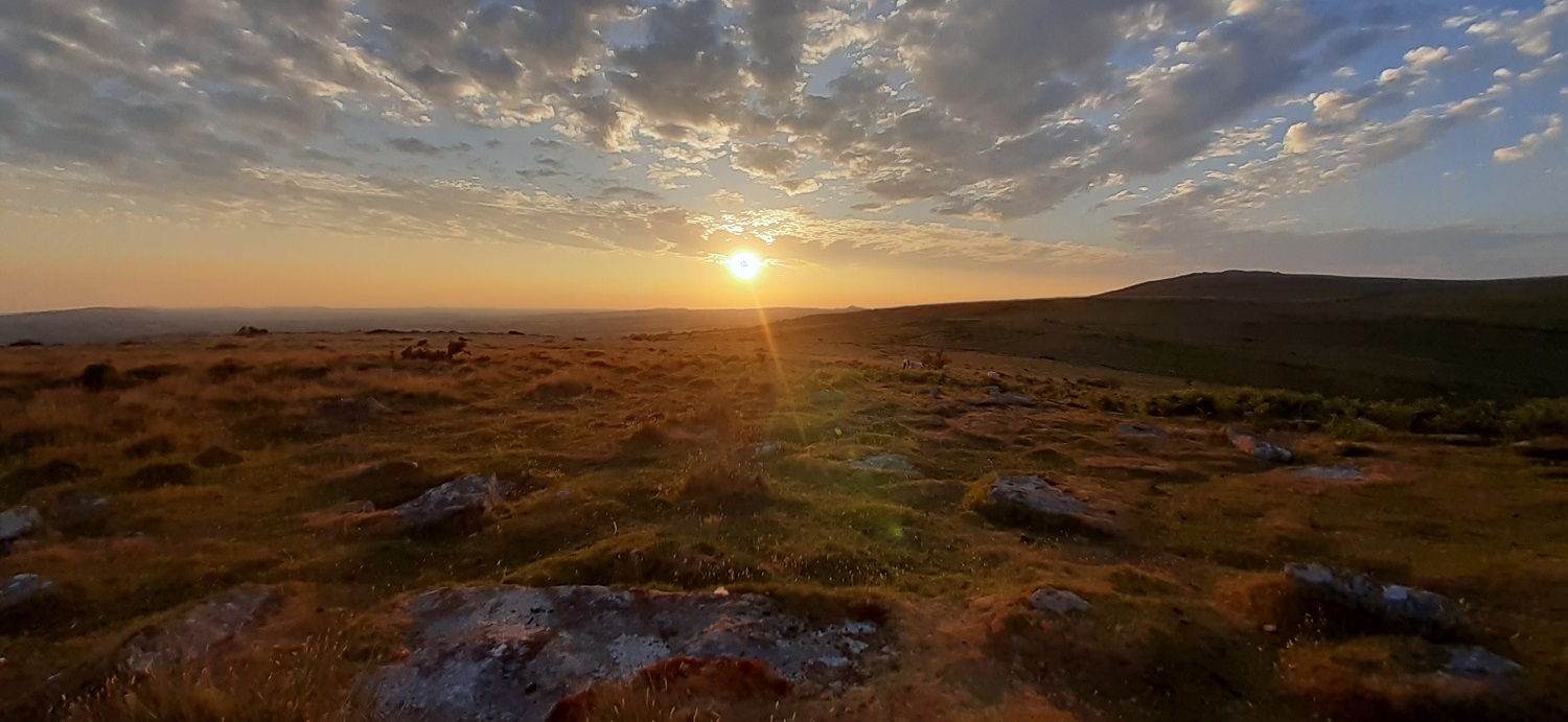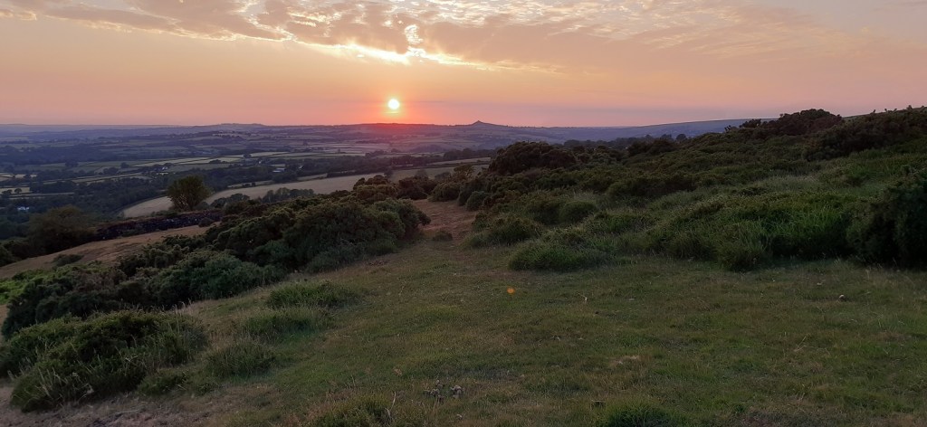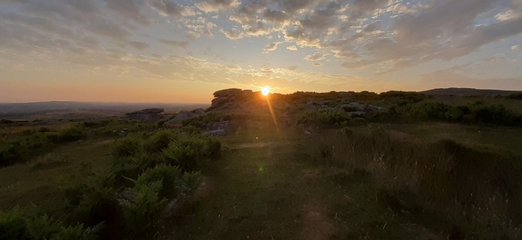 So 3 weeks after bringing the boys here for the first time, I returned again, this time with Linda for another walk around the Staple Tors. This walk is number 29 of my Round 2 of Dartmoor 365 squares, and picks up L5, M4, M5, N4 and N5. However the main reason for being back in this area, was to see a sunset. They are always superb from here, with Brent Tor providing a lovely silhouette to the orange setting sun and I look forward to this walk each year. After many weeks of hot weather and clear skies, where I could easily have done this walk, I waited until nearer the solstice, in the hope that we would still have clear skies and a chance. However the weather was starting to change as we neared the end of June, the jet stream had shifted north to sit around Britain, and the heavy floods in Italy and Greece were replaced by blistering sunshine there. As a result our hot weather had left us and we had some rain and more cloud, not to worry we still had some very good days of sunshine and this one looked like it would be perfect. We copied the same walk I did with the boys initially before looping around Barn Hill, picking off a few extra tors and then enjoying the sunset at the end. Lovely way to spend an evening.