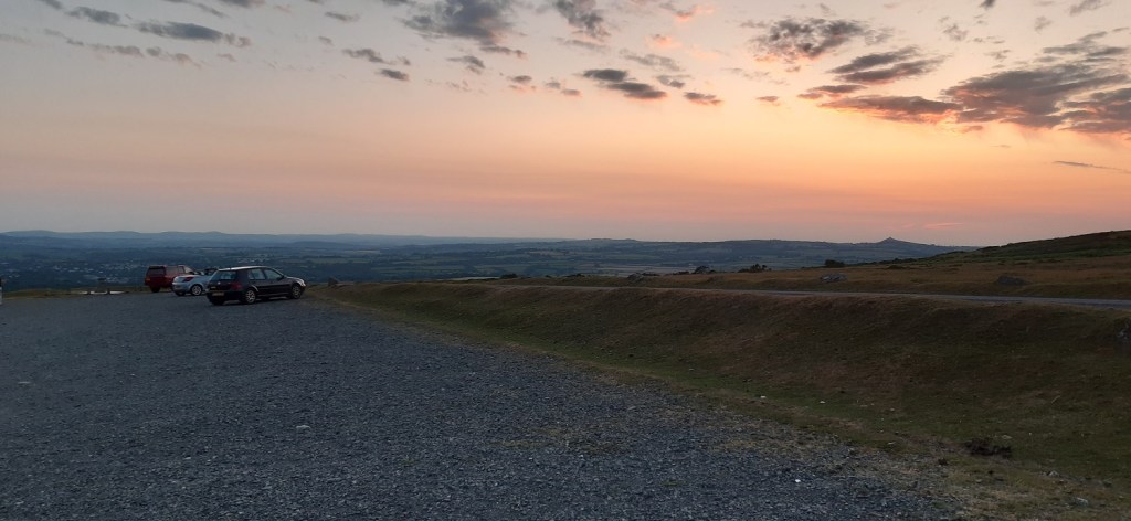 Heckwood Tor, Cox Tor behind left and the Staple Tors rightGlorious light now and the clouds above are being lit up by the setting sunVixen Tor catches the last of the sunSun setting over Feather Tor, still about 25 mins or more yet though before it sets properlyLooking to Pew Tor from Feather TorWindy Post and the Grimstone leat, there is a bullseye stone allowing water to go straight on and to a farm near Pew Tor, the rest heads right and along the Grimstone leat towards Plaster DownProwtytown Rocks was our decision for the sunset or somewhere near it anywayThis is what you get from here, Brent Tor is in line for the sun to set next to it. The only issue is a line of cloud just above the horizon which looks like it will swallow the sun before it hits Brent Tor and the horizonStill a sight as the oranges and reds takes over the colour paletteSunset Brent Tor styleWe’d sat up from Prowtytown Rocks nearer to the car to enjoy the end of the dayThe thin line of cloud just takes the end of the sunset away, but it is still stunningEnd of the day clouds and the sun has gone nowPork Hill car park, always busy with people enjoying the sunset at this time of year. A fantastic walk picking off lots of tors, 10 in total, with 3 Dartmoor squares as well. Perfect end to a day.