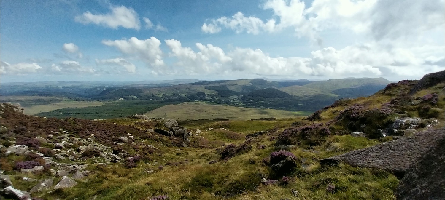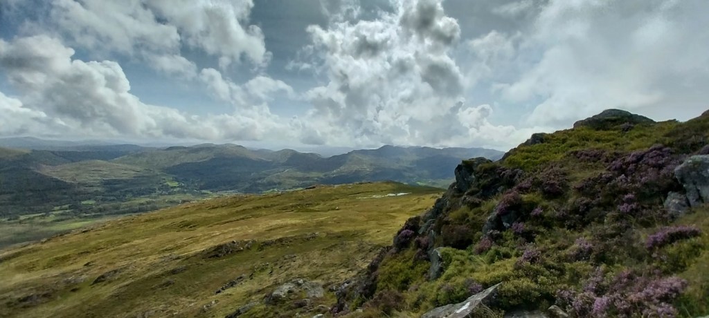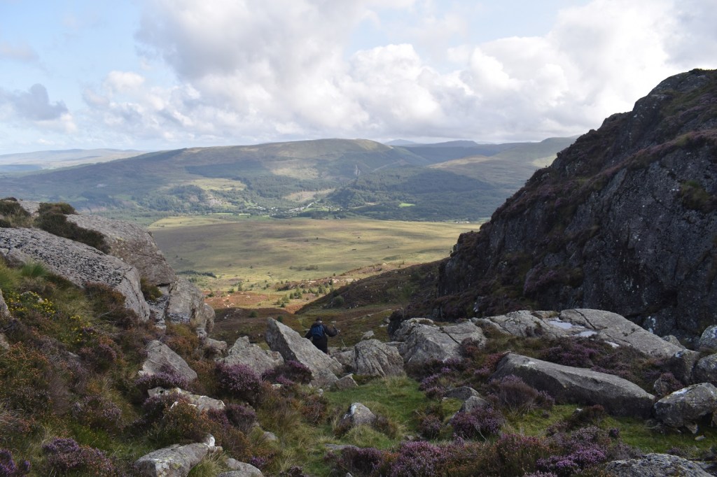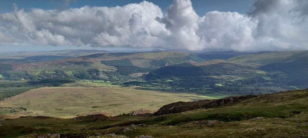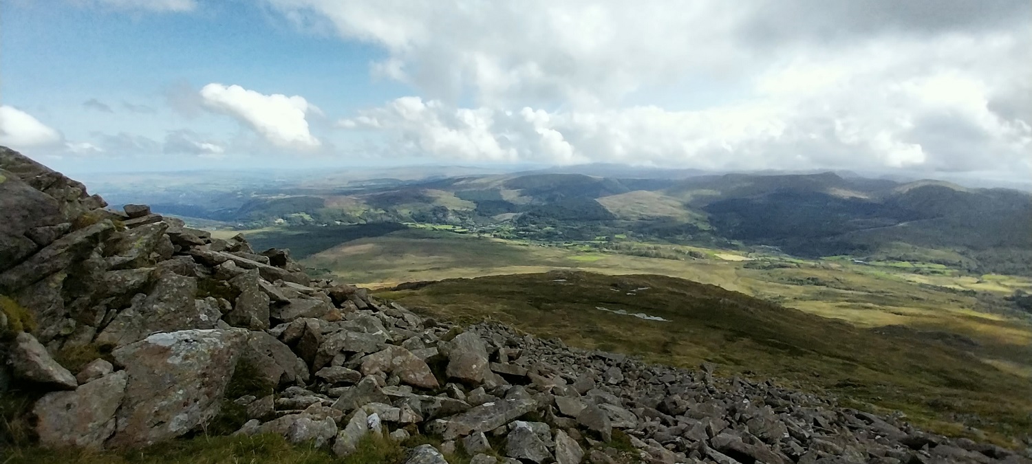 A bit of sunshine on this Sunday as we headed out again, the day after our blowy walk up Cnicht. The clouds were still skudding across the sky, but at least we got plenty of views, blue skies and no rain on this walk. Instead of the normal starting point of Capel Curig, we decided that a shorter drive would give us an easier walk from Dolwyddelan, especially as half the 8 mile distance is on forest tracks. Most of the walks up to Moel Siabod will talk about the Daear Dhu ridge, a fine rocky scramble to the summit, for us we stuck to the quicker path next to the ridge and made for an easier route. The views were still superb, especially in the direction of Blaenau Ffestiniog and the surrounding mountains. This was a mountain that I’ve had on my list for a while now, probably longer than Tryfan and Snowdon, as a friend from Plymouth waxed lyrical about the walk. He was right, it is a fantastic mountain, it was just a shame we couldn’t get the much written about views into the Snowdon horseshoe due to the cloud being down to our west. So our second walk of our holiday and a cracker, we also grabbed a well earned pint in the Y Gwydyr pub as we finished, a fine end to this one.
