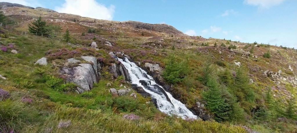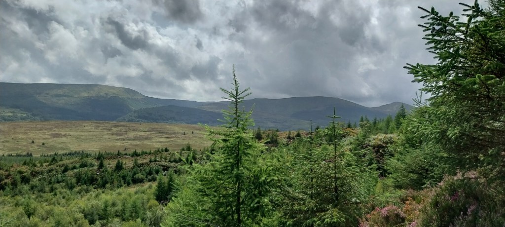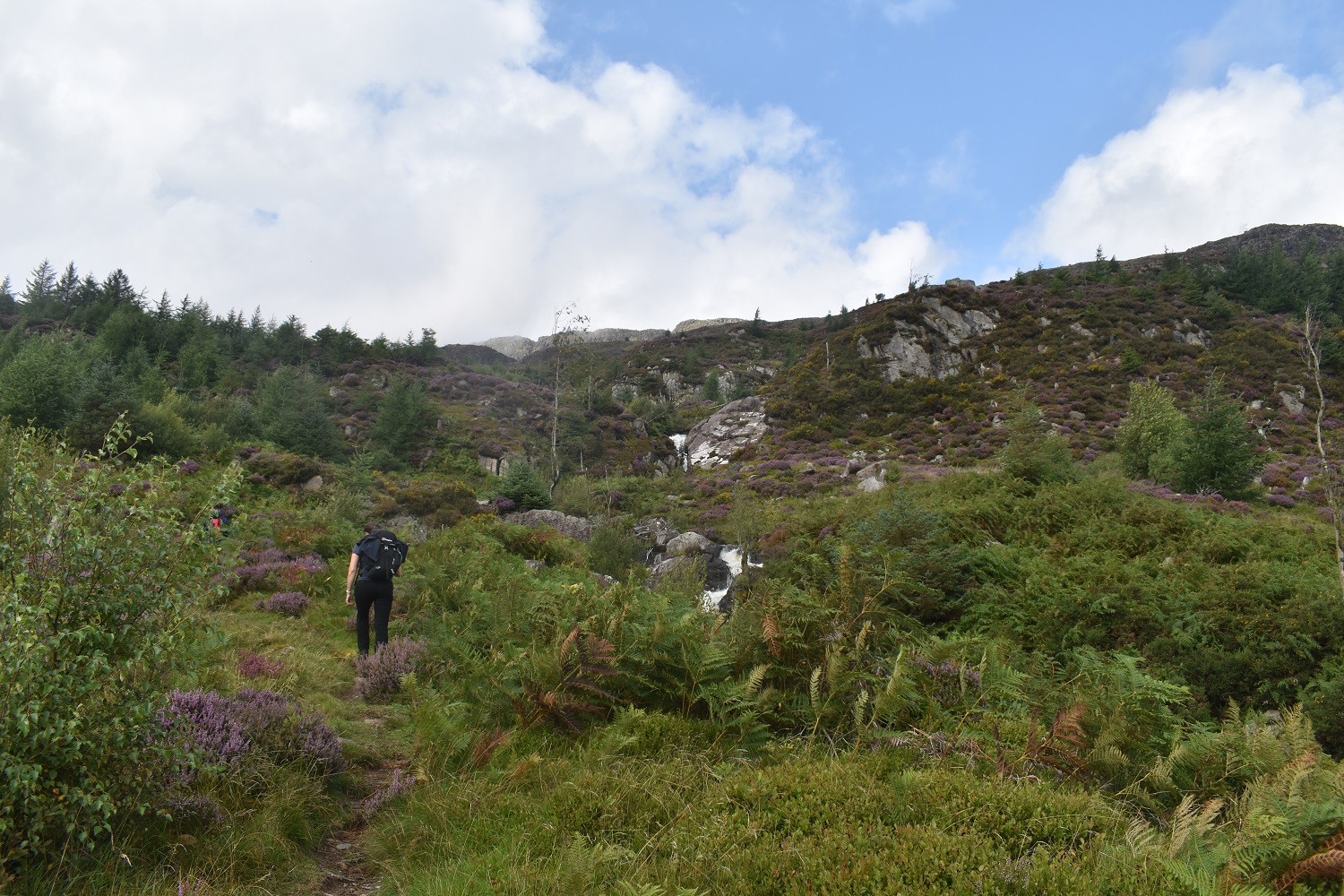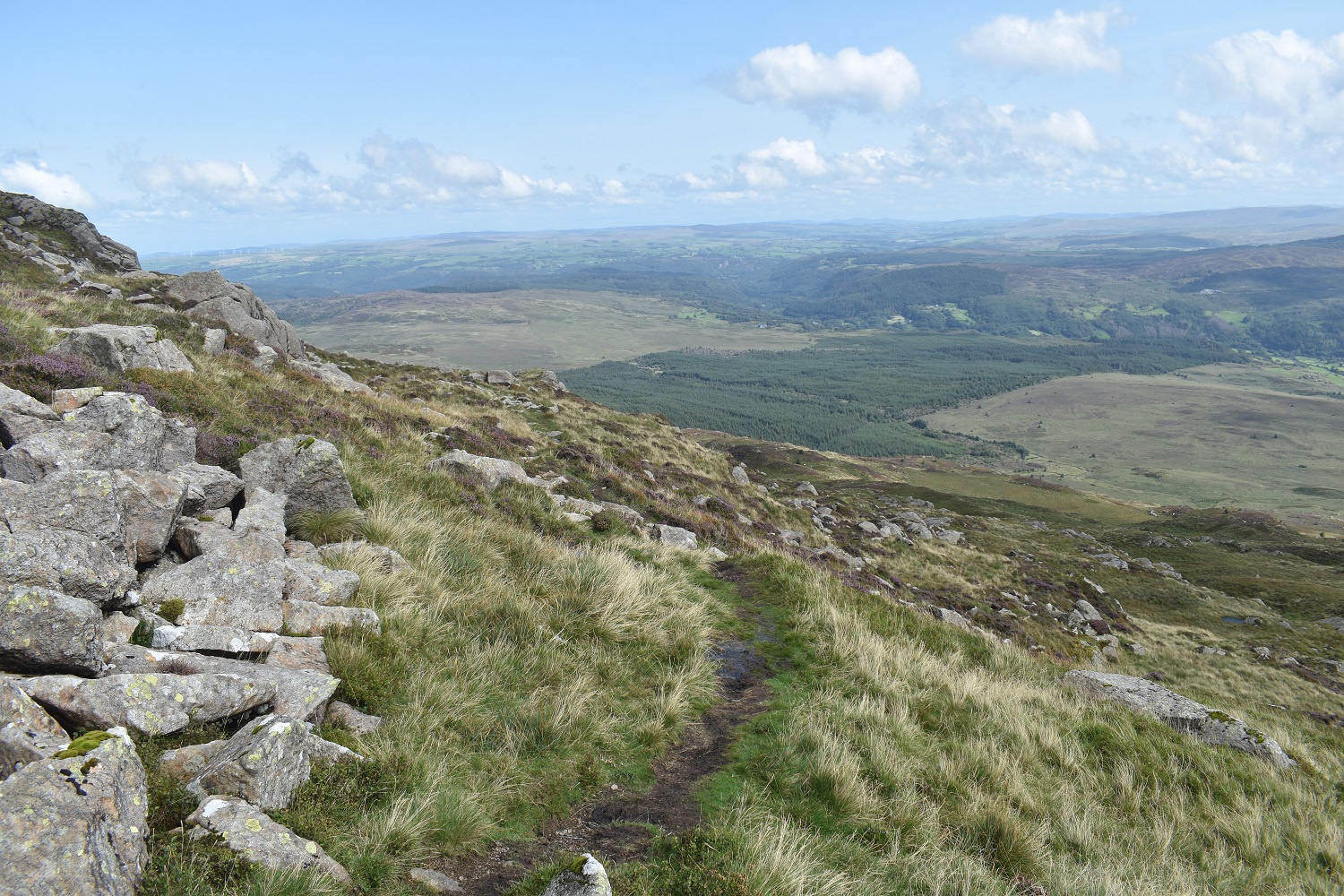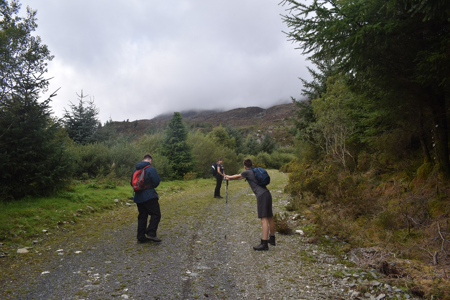 Starting out in the village of Dolwyddelan, we’d parked on some roadside parking opposite the Spar shop in the village. That’s Y Ro Wen beyond the villageLinda walking across the fields to reach the forest track, we’d already started shedding layers as it was a warm day. The hills at that back are those around the A470 Crimea Pass, and include Moel Farlwyd and Moel Dyrnogydd.A Peacock butterflyStopping for a rest on the forest track, the cloud was still down on Moel Siabod ahead but soon the sun would start to burn through and the wind blew the clouds away a bit.Climbing, we pass waterfalls created from the outflow of Llyn y FoelAs we stopped for a brew someone went bilberry picking, and eating! We were also bitten a lot by midges at this point and I spent the rest of the week with itchy lumps over my head.The hills behind Dolwyddelan that run towards Blaenau Ffestiniog. Including Moel Penamnen and Moel FarlwydThe other way (south east ish) is Penmachno ForestThe waterfalls marked on the map as we head up to Llyn y FoelAnd more waterfalls, it took a bit of care to cross these streams as there was plenty of water in them after Storm BettyLooking out across the forest we have walked through, the high point is Y Ro WenLlyn y Foel and Moel Siabod behind, its summit just catching the clouds. Daear Dhu ridge is on the left hand sideLooking out again as we head around Llyn y Foel to the bottom of Daear DhuThis is the path that runs 10 or so metres from the rocky scramble, easy to follow and threads its way through the rocks, there are a few bits to clamber over but nothing difficultOnwards. This was a theme for the walking on this holiday, with the boys ahead of us or waiting for us to catch upThe dip in the distance is the A470 Crimea Pass road as it then drops down beyond to Blaenau Ffestiniog. To the left of the dip is Moel Farlwyd and the right is Allt Fawr and Moel DrumanBit of a scrambly section of the path as we near to top of the ridge to turn right to the summitLooking back down to DolwyddelanMoel Siabod summit photo taken by Linda of me and the boysWe took a walk to the shelter to see if the cloud would clear enough to take some photos, but this was as good as it got to the north. Here looking down towards Capel Curig.Heading back up to the summit againDescending again the same route as we came up, again East Wales is stretching out ahead, as we look down to Dolwyddelan.Big white fluffy clouds over Y Ro WenBack at Llyn y Foel sitting in the bowl surrounded by Moel Siabod summit areaGorgeous selfie of two happy hikers. A stop for one last coffee break before we head into the forest again.Daear Dhu ridge from our brew stopBack at the top of the waterfalls and slowly picking our way back down the rocky steps to the forestOne last look back up to Moel Siabod, now clear of cloud although the far side never seemed to clear to give the views to Snowdon.Blues skies overhead, and midges biting my headMy youngest waiting for myself, againBack on the forest tracks, it was very warm in here as the early evening sun seemed to pick up in temperatureOne last photo as we reach the outskirts of Dolwyddelan. Moel Siabod is definitely one of the best mountains in this National Park, it has two sides to it, in a similar way to Helvellyn. One with a bowl, a lake and steep rocky face, and the other a grassier, sloped lump of a hill leading up to the rocky summit. Our route in took us through the better side on this great mountain. Now for that pint!