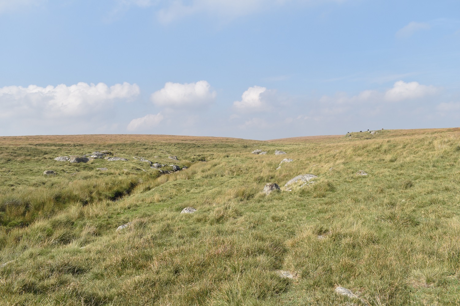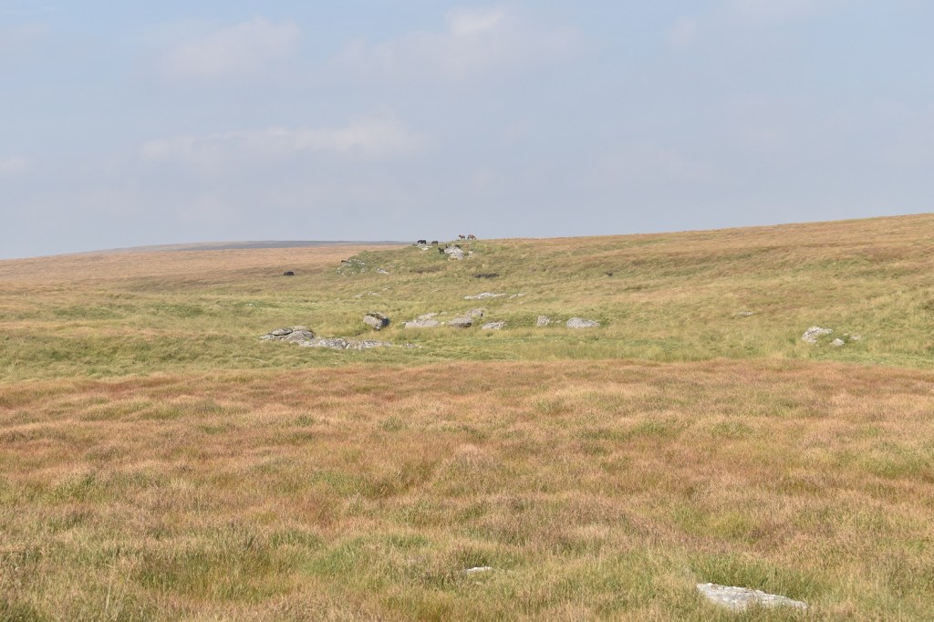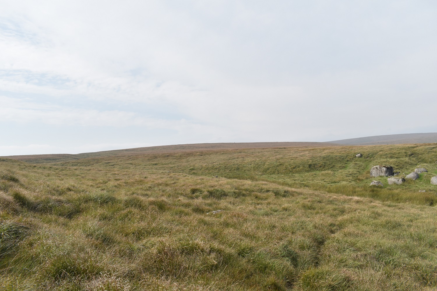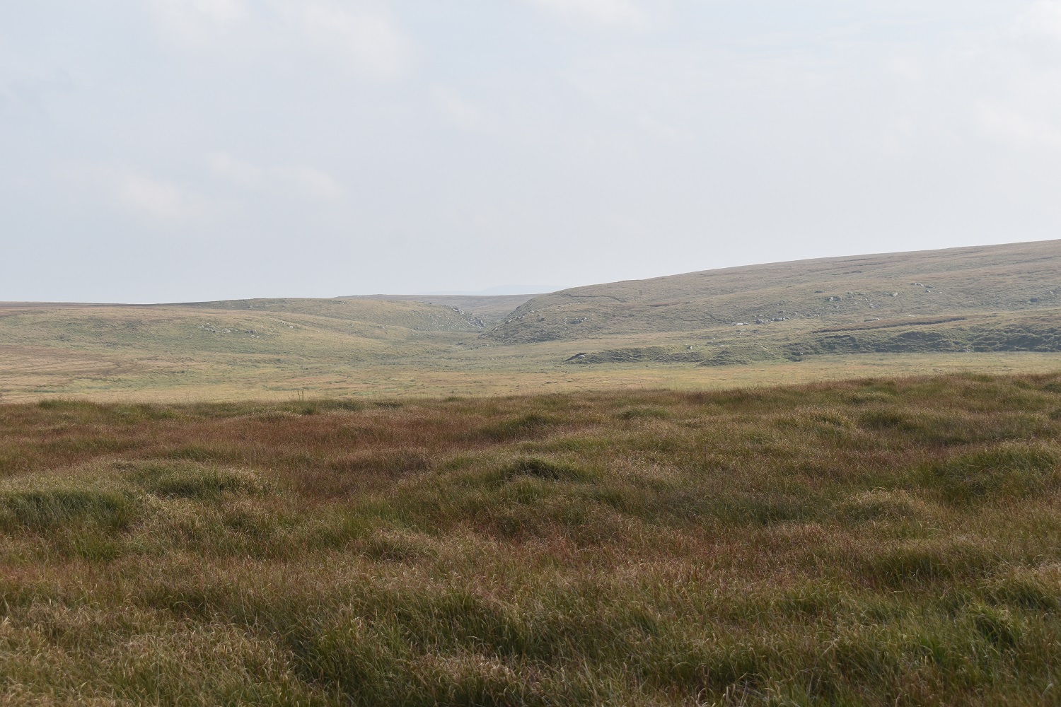 The Postbridge Clapper, said to date from 13th century, even the bridge I’m standing on is from the 1780’s. The East Dart River runs under both structures and will form the most parts of our walk todayDartmoor Ponies as we head to Braddon Lake, which isn’t a lake but a brookBraddon Lake is below, Postbridge in the distanceMore to the south a hazy view over Bellever TorA bit further west is Higher White Tor and Lower White Tor, I’m sure from the name you can work out which is which. We should have been the other side of the wall at this point but a large group of cows meant we went through a gate to this side for some trickier walking with longer grassBroadun Rocks, or at least one of the small outcrops of this bunchApproaching the East Dart WaterfallA dry week means not much water, but it’s always lovely to kick off your shoes here and sit for a bit and have a coffeeSandy Hole Pass is a short walk behind the waterfall, that’s still the East Dart, which flows over the waterfall of the same nameSandy Hole Rocks, these are the northern ones, the southern ones are behind meThe Broada Stones aheadBroada Stones to the right, we will head up here along a good path on the right hand side into Cowflop Bottom, the hill in the centre holds Flat Tor, back right is Cut HillOne of the tinners huts in Cowflop Bottom, the tinning here is said to have caused the silting up of Dartmouth harbourThe peat pass below Flat Tor, the grass is very overgrown in here making it a tricky pathFlat Tor, as it says on the tinThere isn’t much of an outcrop here, but the isolation is unparalleled. Rough Tor is back right, the hill on the left is unnamed, but between me and there is some very boggy ground which is home to the Mires Project and not really anywhere that should be walked, although there is a path going that way!The edge of the Merrivale firing range, always a good plan to follow the poles, as there is always a bit of a path joining them, we followed these down to Cut Hill Water, before turning right and crossing Cut Hill Stream. This is an area which needs dry weather ideally as it is very boggy in winter, we got through here dry shod, but the long grass made for difficult walkingNearly at Kit Rocks, just an easy crossing of the East Dart to do. It is narrowing here, enough to cross with a stone or twoKit RocksThe entrance to Sandy Hole Pass is over the depression holding Broad Marsh as we walk to Statts HouseAnother peat pass, this one heads towards Broad Marsh, the dark hill has Flat Tor at its summitStatts House, you can see the fireplace of this hut still in placeLooking north from Statts House to more bleak landThe high point over there is Statts House, we’d ploughed through some truly horrid areas to get here, this is Winneys Down, a vast area of grim long grass and boggy horribleness There are some outcrops on Winneys Down, but by this point we just wanted shorter grass and a semblance of a path which didn’t vanish on usThe East Dart is down below us here and we’d found the path that follows the twists and turns of the river. My feet were sore by this point with the Plantar Fasciitis kicking in again, so I had a soak in the Winneys Down Brook to help out.We’d spent a good 15 minutes here trying to negotiate a large group of cows, calves and bulls. Only a few in the picture but there was easily 30 or more covering the area and pinning us in apart from a return the way we came or a sliver by the riverAs if to compound the cows, we then hit the super narrow gorse path. Hartland Tor is ahead of usThe Willaim Donaghy memorial. As it says he was found here in February 1914, having disappeared from Liverpool in November 1913. All he had was a train ticket to Exeter and a train station locker stub. A gun was found in the locker. A sorry story of a teacher who worked in Warrington.Looking back from below Hartland Tor to Broad DownAnd back at the car, on the left here in the roadside parking opposite the pub, no pint for us this time as it was 6pm on a Sunday and we needed to get home, but its a good pub to finish off a walk in this area