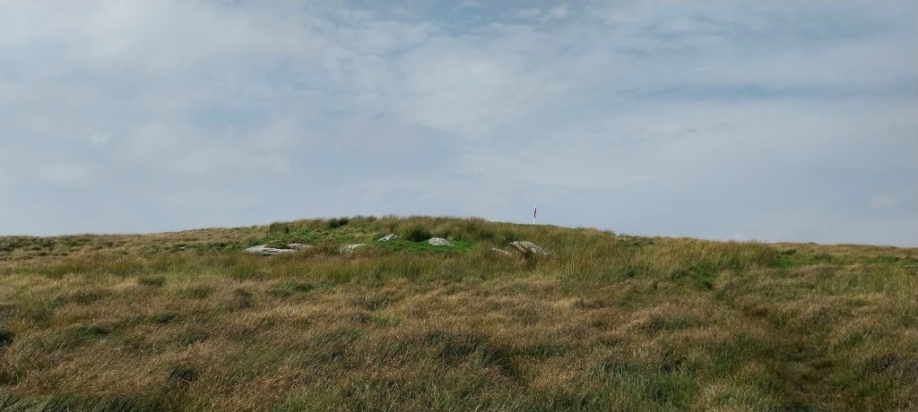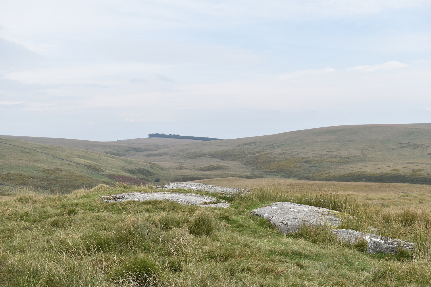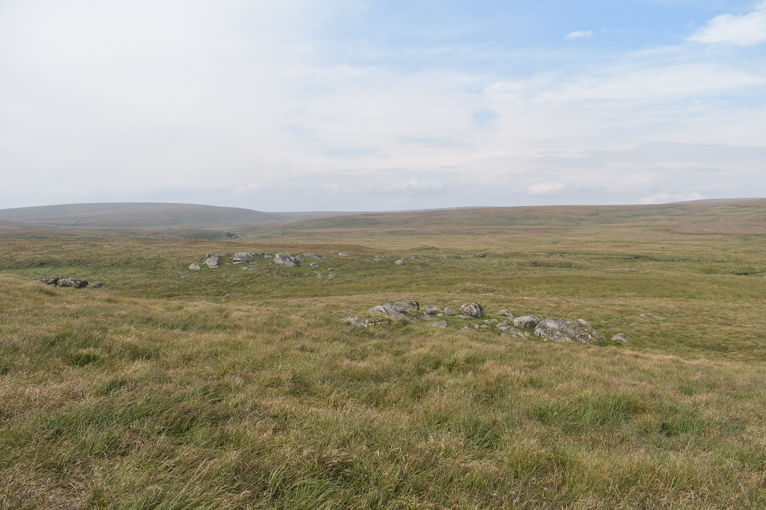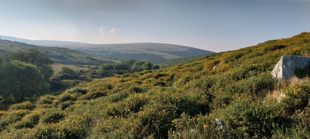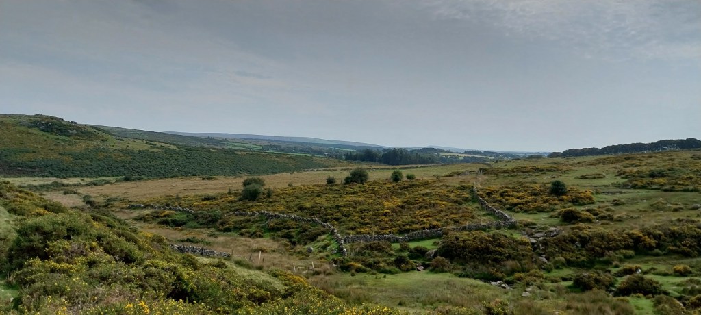 The Postbridge Clapper, said to date from 13th century, even the bridge I’m standing on is from the 1780’s. The East Dart River runs under both structures and will form the most parts of our walk todayDartmoor Ponies as we head to Braddon Lake, which isn’t a lake but a brookBraddon Lake is below, Postbridge in the distanceMore to the south a hazy view over Bellever TorA bit further west is Higher White Tor and Lower White Tor, I’m sure from the name you can work out which is which. We should have been the other side of the wall at this point but a large group of cows meant we went through a gate to this side for some trickier walking with longer grassBroadun Rocks, or at least one of the small outcrops of this bunchApproaching the East Dart WaterfallA dry week means not much water, but it’s always lovely to kick off your shoes here and sit for a bit and have a coffeeSandy Hole Pass is a short walk behind the waterfall, that’s still the East Dart, which flows over the waterfall of the same nameSandy Hole Rocks, these are the northern ones, the southern ones are behind meThe Broada Stones aheadBroada Stones to the right, we will head up here along a good path on the right hand side into Cowflop Bottom, the hill in the centre holds Flat Tor, back right is Cut HillOne of the tinners huts in Cowflop Bottom, the tinning here is said to have caused the silting up of Dartmouth harbourThe peat pass below Flat Tor, the grass is very overgrown in here making it a tricky pathFlat Tor, as it says on the tinThere isn’t much of an outcrop here, but the isolation is unparalleled. Rough Tor is back right, the hill on the left is unnamed, but between me and there is some very boggy ground which is home to the Mires Project and not really anywhere that should be walked, although there is a path going that way!The edge of the Merrivale firing range, always a good plan to follow the poles, as there is always a bit of a path joining them, we followed these down to Cut Hill Water, before turning right and crossing Cut Hill Stream. This is an area which needs dry weather ideally as it is very boggy in winter, we got through here dry shod, but the long grass made for difficult walkingNearly at Kit Rocks, just an easy crossing of the East Dart to do. It is narrowing here, enough to cross with a stone or twoKit RocksThe entrance to Sandy Hole Pass is over the depression holding Broad Marsh as we walk to Statts HouseAnother peat pass, this one heads towards Broad Marsh, the dark hill has Flat Tor at its summitStatts House, you can see the fireplace of this hut still in placeLooking north from Statts House to more bleak landThe high point over there is Statts House, we’d ploughed through some truly horrid areas to get here, this is Winneys Down, a vast area of grim long grass and boggy horribleness There are some outcrops on Winneys Down, but by this point we just wanted shorter grass and a semblance of a path which didn’t vanish on usThe East Dart is down below us here and we’d found the path that follows the twists and turns of the river. My feet were sore by this point with the Plantar Fasciitis kicking in again, so I had a soak in the Winneys Down Brook to help out.We’d spent a good 15 minutes here trying to negotiate a large group of cows, calves and bulls. Only a few in the picture but there was easily 30 or more covering the area and pinning us in apart from a return the way we came or a sliver by the riverAs if to compound the cows, we then hit the super narrow gorse path. Hartland Tor is ahead of usThe Willaim Donaghy memorial. As it says he was found here in February 1914, having disappeared from Liverpool in November 1913. All he had was a train ticket to Exeter and a train station locker stub. A gun was found in the locker. A sorry story of a teacher who worked in Warrington.Looking back from below Hartland Tor to Broad DownAnd back at the car, on the left here in the roadside parking opposite the pub, no pint for us this time as it was 6pm on a Sunday and we needed to get home, but its a good pub to finish off a walk in this area