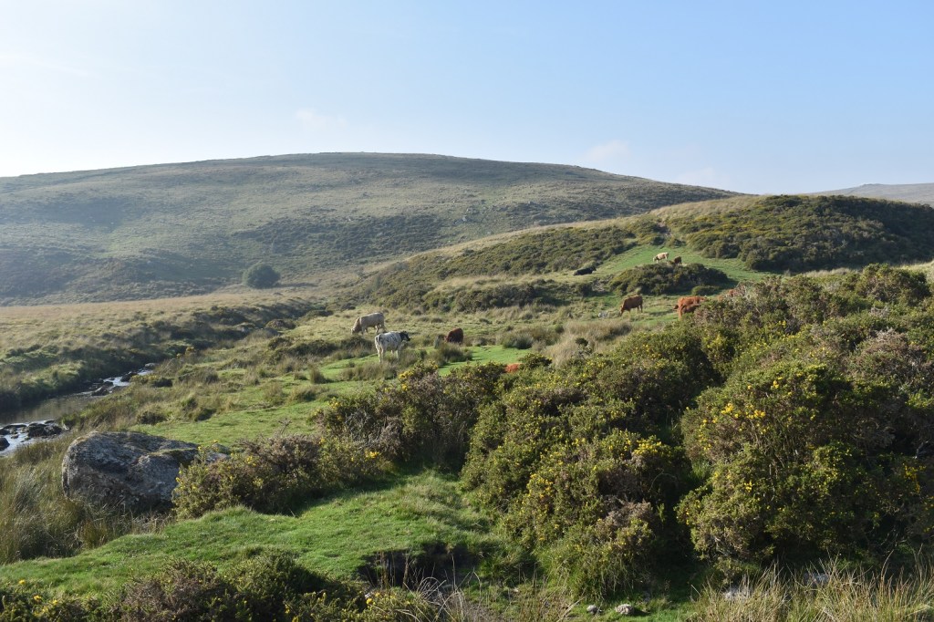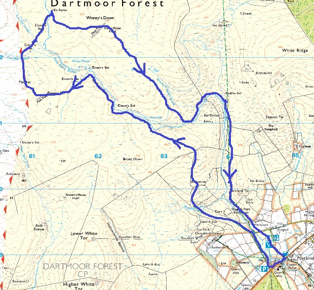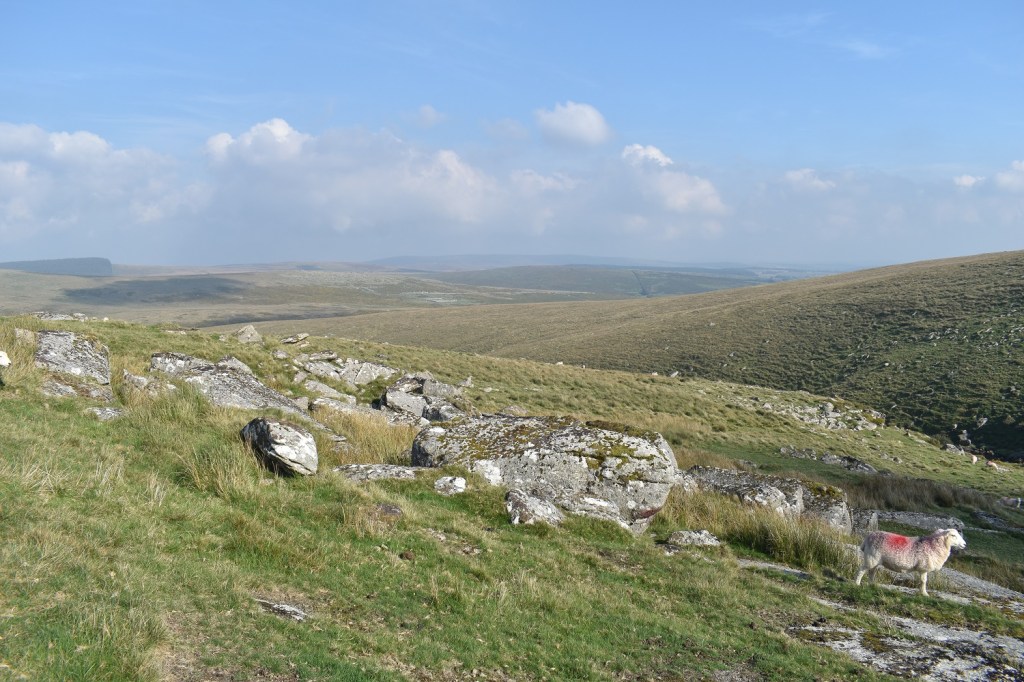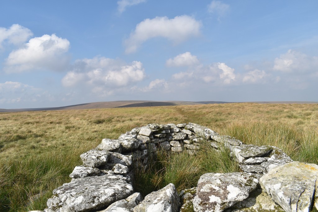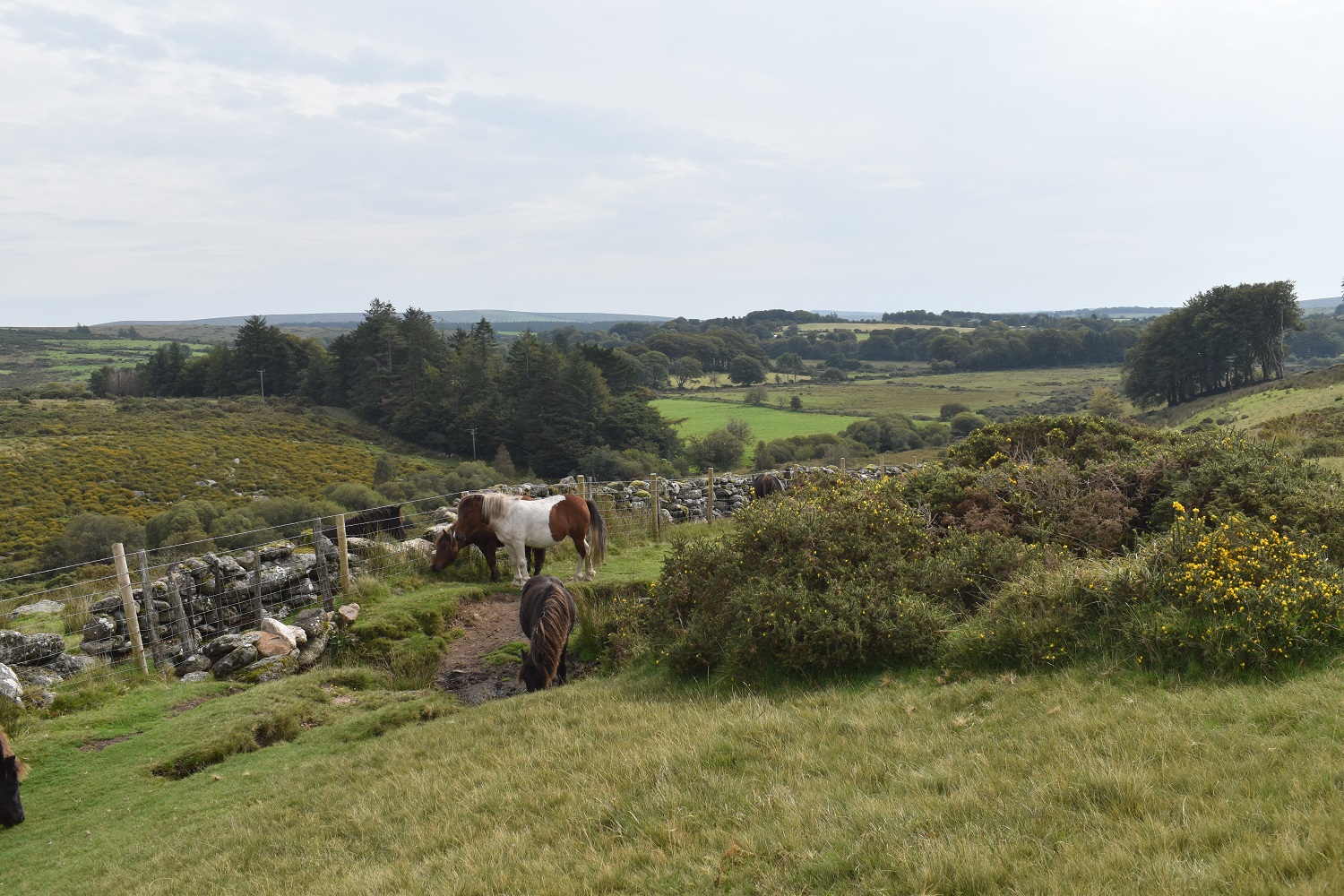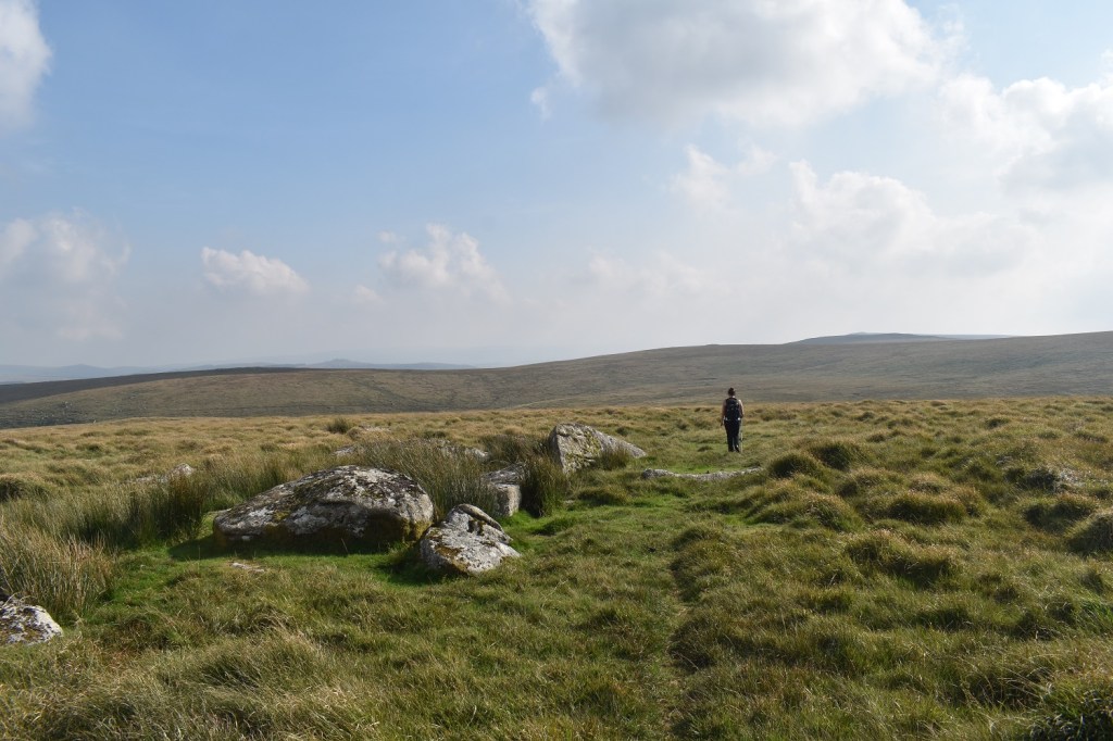 The Postbridge Clapper, said to date from 13th century, even the bridge I’m standing on is from the 1780’s. The East Dart River runs under both structures and will form the most parts of our walk todayDartmoor Ponies as we head to Braddon Lake, which isn’t a lake but a brookBraddon Lake is below, Postbridge in the distanceMore to the south a hazy view over Bellever TorA bit further west is Higher White Tor and Lower White Tor, I’m sure from the name you can work out which is which. We should have been the other side of the wall at this point but a large group of cows meant we went through a gate to this side for some trickier walking with longer grassBroadun Rocks, or at least one of the small outcrops of this bunchApproaching the East Dart WaterfallA dry week means not much water, but it’s always lovely to kick off your shoes here and sit for a bit and have a coffeeSandy Hole Pass is a short walk behind the waterfall, that’s still the East Dart, which flows over the waterfall of the same nameSandy Hole Rocks, these are the northern ones, the southern ones are behind meThe Broada Stones aheadBroada Stones to the right, we will head up here along a good path on the right hand side into Cowflop Bottom, the hill in the centre holds Flat Tor, back right is Cut HillOne of the tinners huts in Cowflop Bottom, the tinning here is said to have caused the silting up of Dartmouth harbourThe peat pass below Flat Tor, the grass is very overgrown in here making it a tricky pathFlat Tor, as it says on the tinThere isn’t much of an outcrop here, but the isolation is unparalleled. Rough Tor is back right, the hill on the left is unnamed, but between me and there is some very boggy ground which is home to the Mires Project and not really anywhere that should be walked, although there is a path going that way!The edge of the Merrivale firing range, always a good plan to follow the poles, as there is always a bit of a path joining them, we followed these down to Cut Hill Water, before turning right and crossing Cut Hill Stream. This is an area which needs dry weather ideally as it is very boggy in winter, we got through here dry shod, but the long grass made for difficult walkingNearly at Kit Rocks, just an easy crossing of the East Dart to do. It is narrowing here, enough to cross with a stone or twoKit RocksThe entrance to Sandy Hole Pass is over the depression holding Broad Marsh as we walk to Statts HouseAnother peat pass, this one heads towards Broad Marsh, the dark hill has Flat Tor at its summitStatts House, you can see the fireplace of this hut still in placeLooking north from Statts House to more bleak landThe high point over there is Statts House, we’d ploughed through some truly horrid areas to get here, this is Winneys Down, a vast area of grim long grass and boggy horribleness There are some outcrops on Winneys Down, but by this point we just wanted shorter grass and a semblance of a path which didn’t vanish on usThe East Dart is down below us here and we’d found the path that follows the twists and turns of the river. My feet were sore by this point with the Plantar Fasciitis kicking in again, so I had a soak in the Winneys Down Brook to help out.We’d spent a good 15 minutes here trying to negotiate a large group of cows, calves and bulls. Only a few in the picture but there was easily 30 or more covering the area and pinning us in apart from a return the way we came or a sliver by the riverAs if to compound the cows, we then hit the super narrow gorse path. Hartland Tor is ahead of usThe Willaim Donaghy memorial. As it says he was found here in February 1914, having disappeared from Liverpool in November 1913. All he had was a train ticket to Exeter and a train station locker stub. A gun was found in the locker. A sorry story of a teacher who worked in Warrington.Looking back from below Hartland Tor to Broad DownAnd back at the car, on the left here in the roadside parking opposite the pub, no pint for us this time as it was 6pm on a Sunday and we needed to get home, but its a good pub to finish off a walk in this area